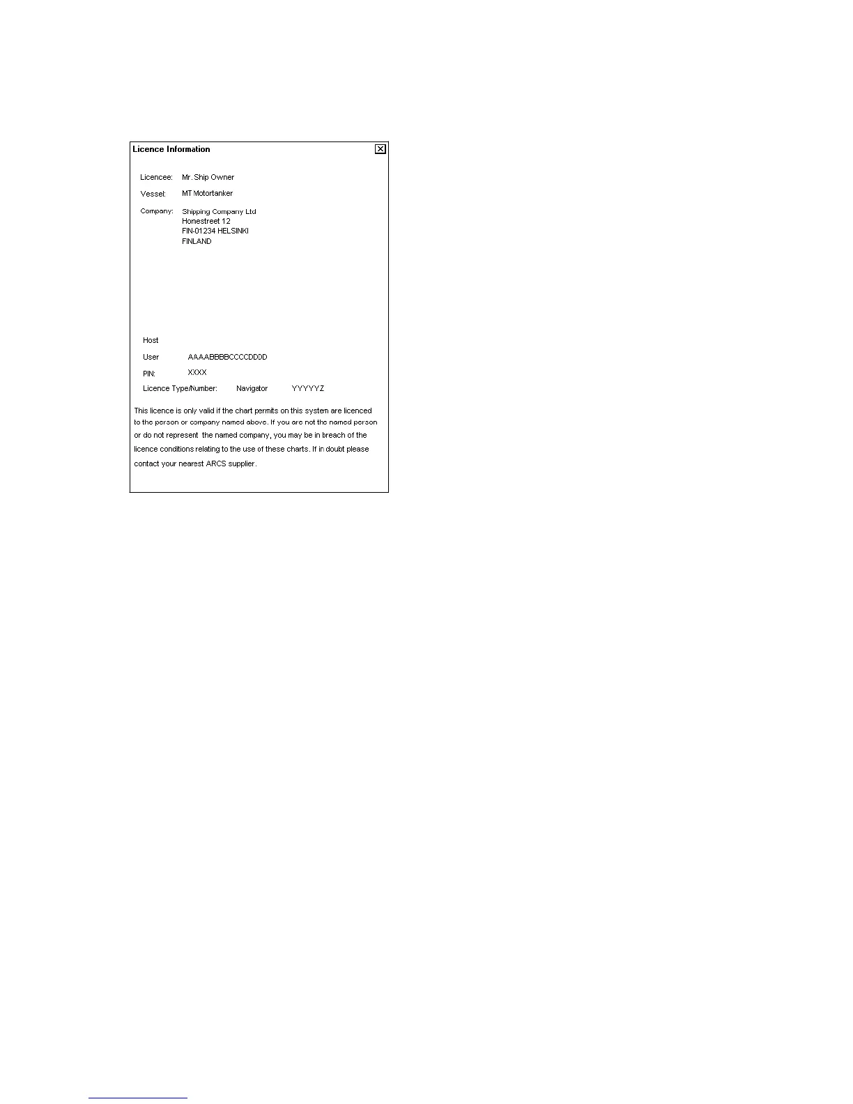 If ARCS format is active, you can choose ARCS License from the Chart menu, with "Licence". License information