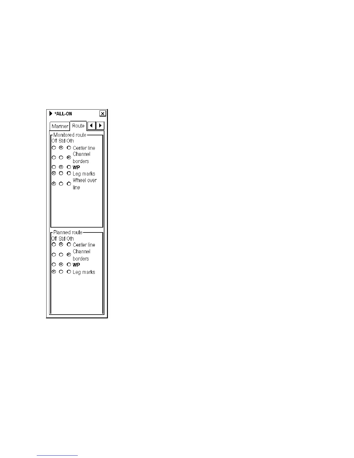 Note: WP mark on both monitor and planned routes is permanently set to Std