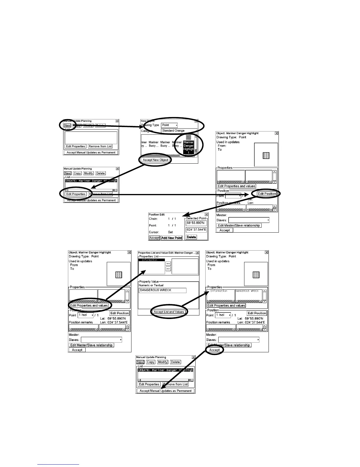 The mariner can insert a new object either using New or Copy in the Manual Update Planning dialog box. With