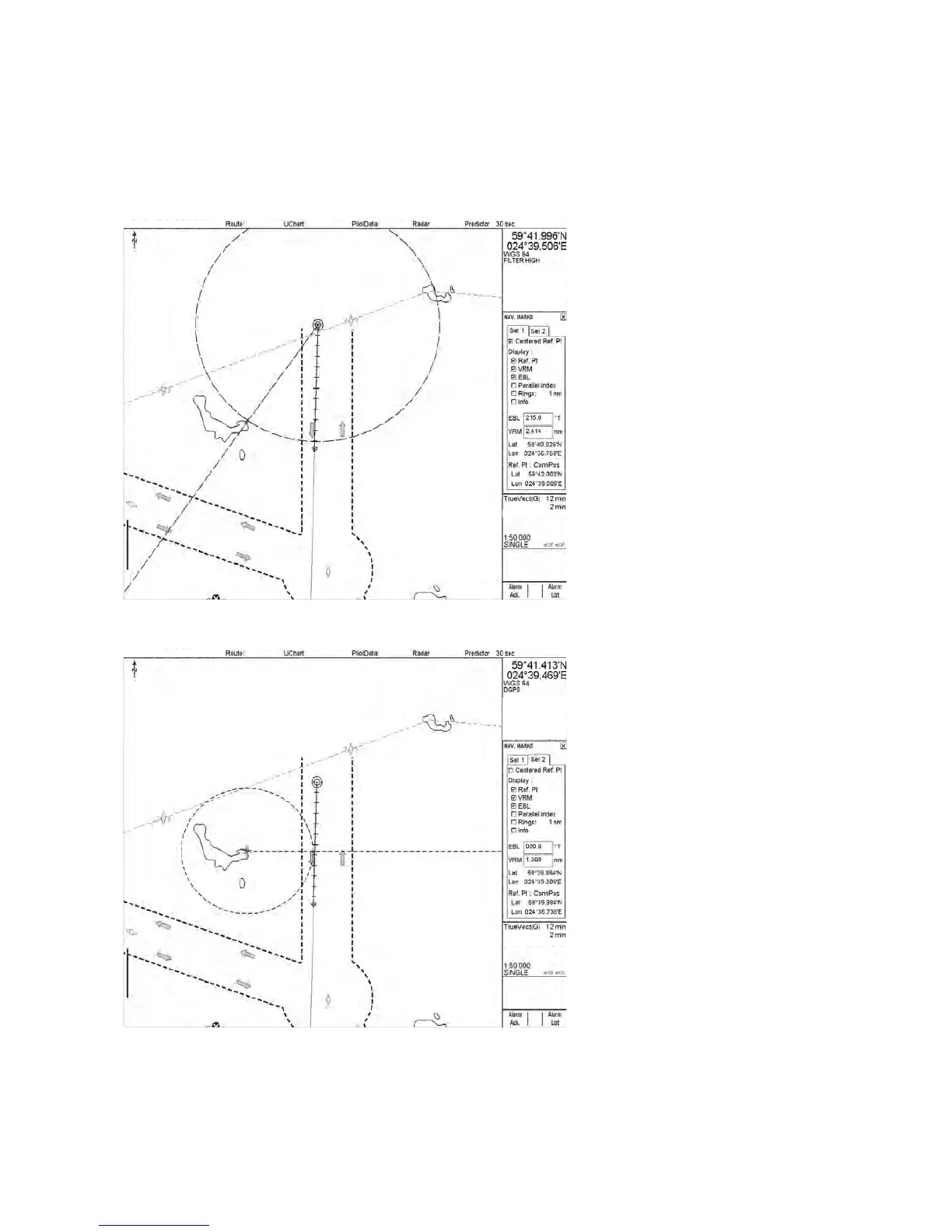 Reference point off centered with Variable Range Marker (VRM) and Electronic Bearing Line (EBL)