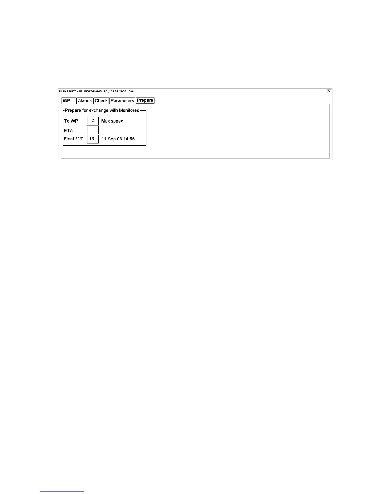 The Prepare page allows you to prepare for exchange of planned route with monitored route. Use this page if you