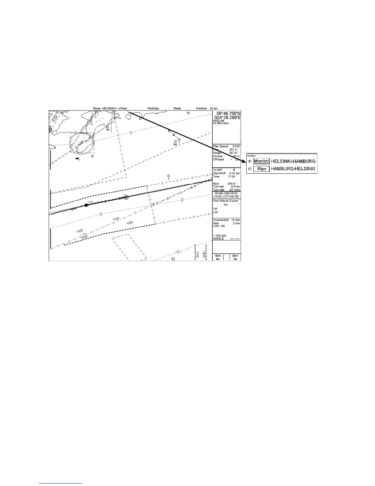 mode. In the planning mode, a user chart is only displayed on the chart radar display; it is not displayed on the