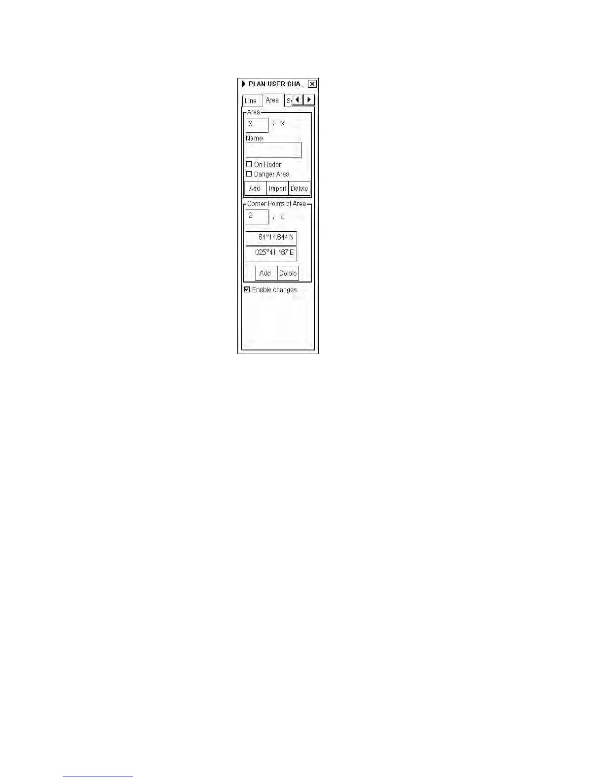 When a operator defines an area for a user chart he adds an area object then gives a name and chooses if it is