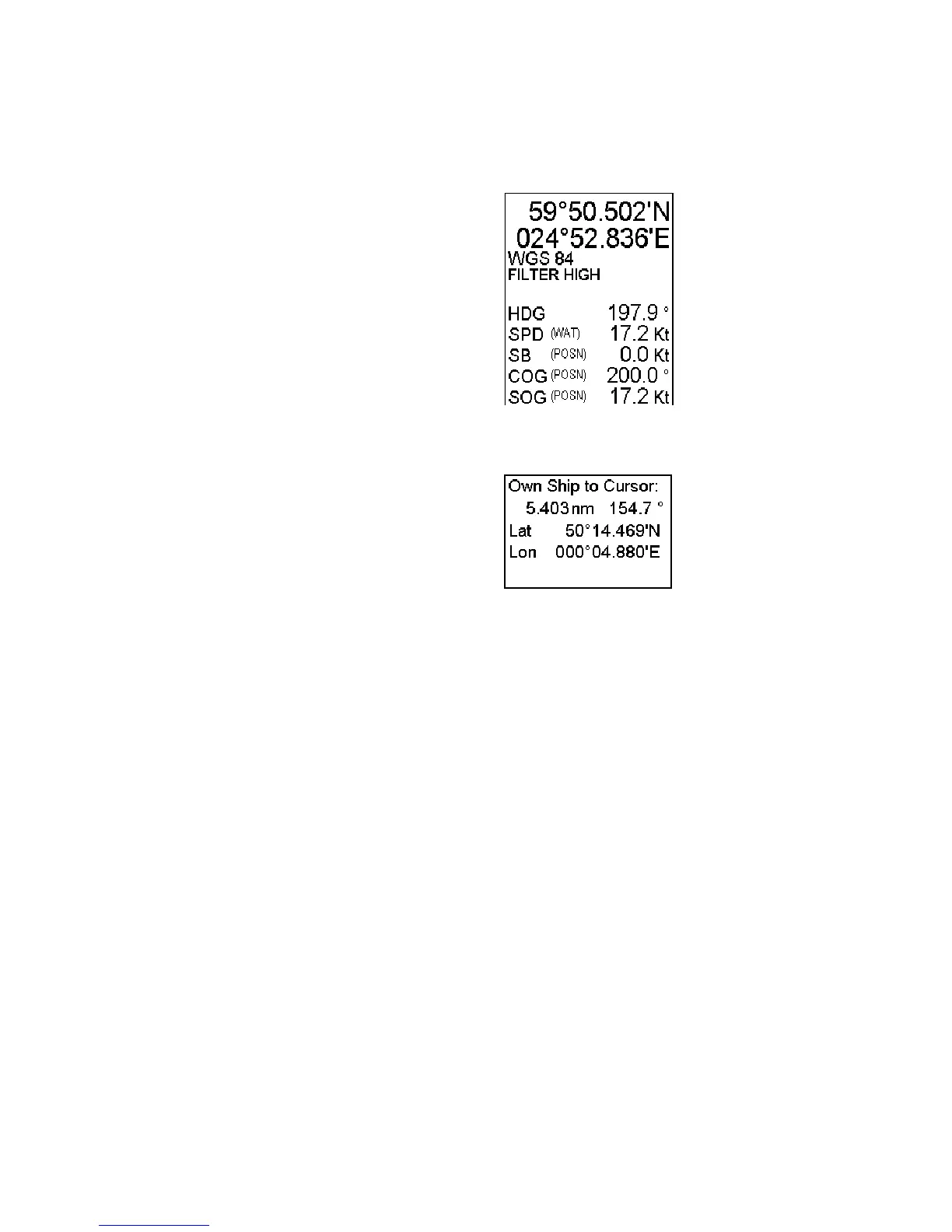 The information area displays details about your ship's position, course and speed and the cursor's location on the