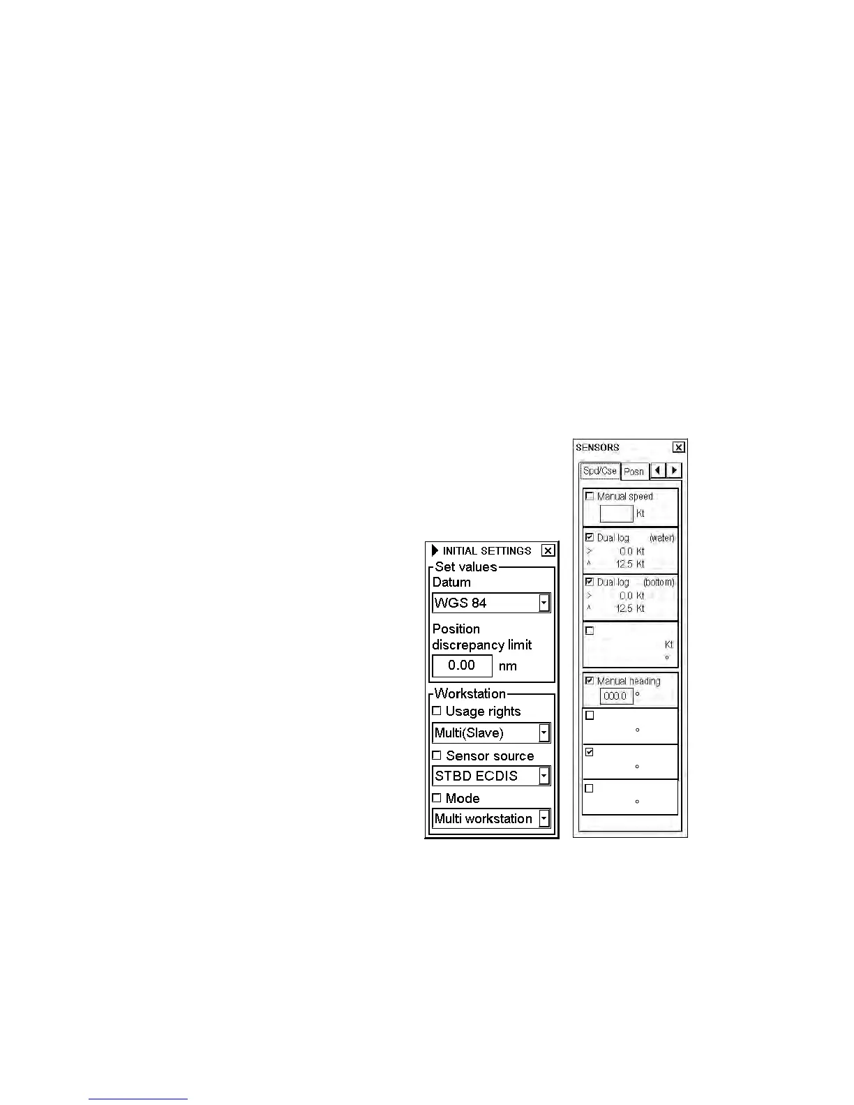 workstations share the navigation sensors. The workstation chosen as a sensor source is connected to all sensors.