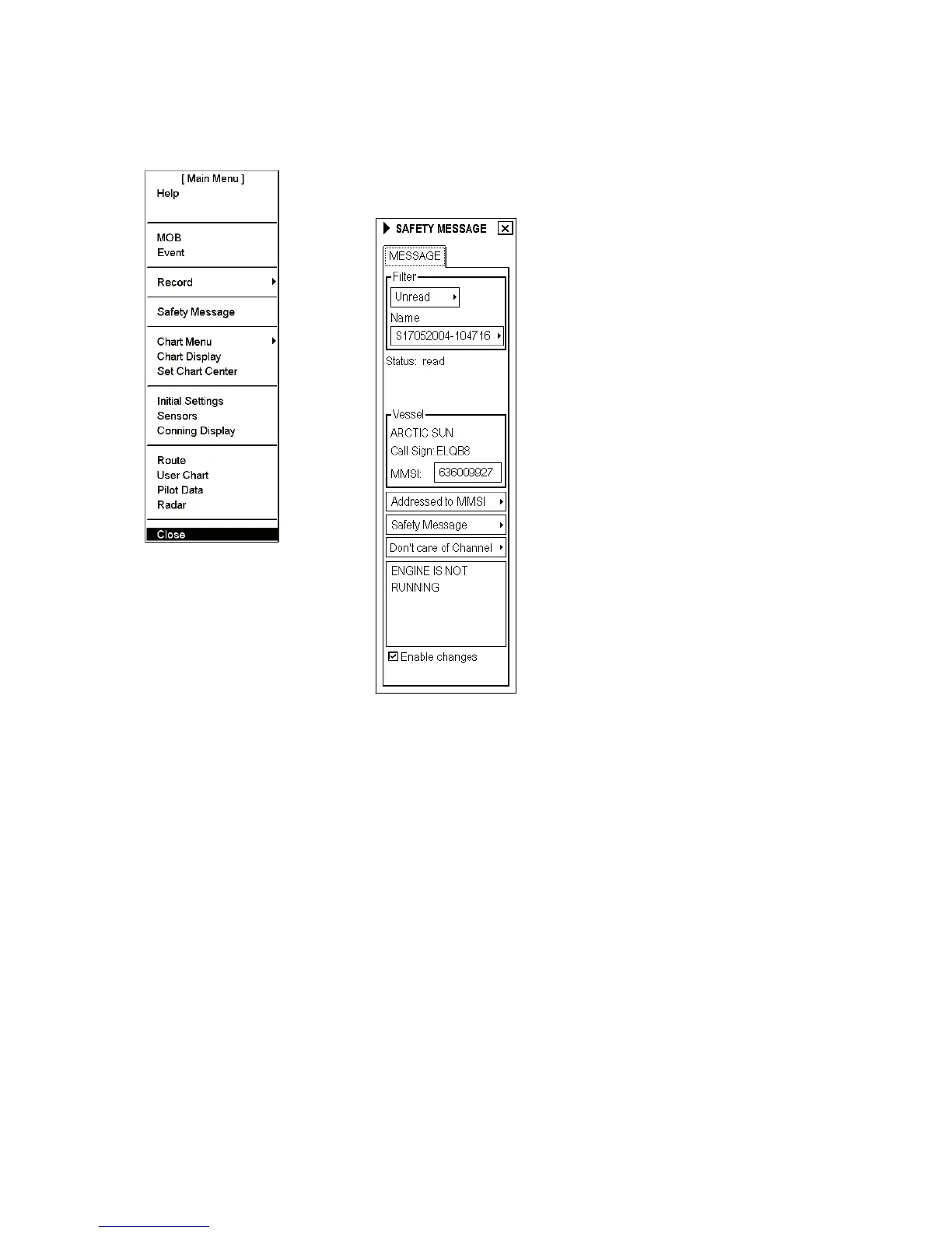 1. Display the Safety Message dialog box.