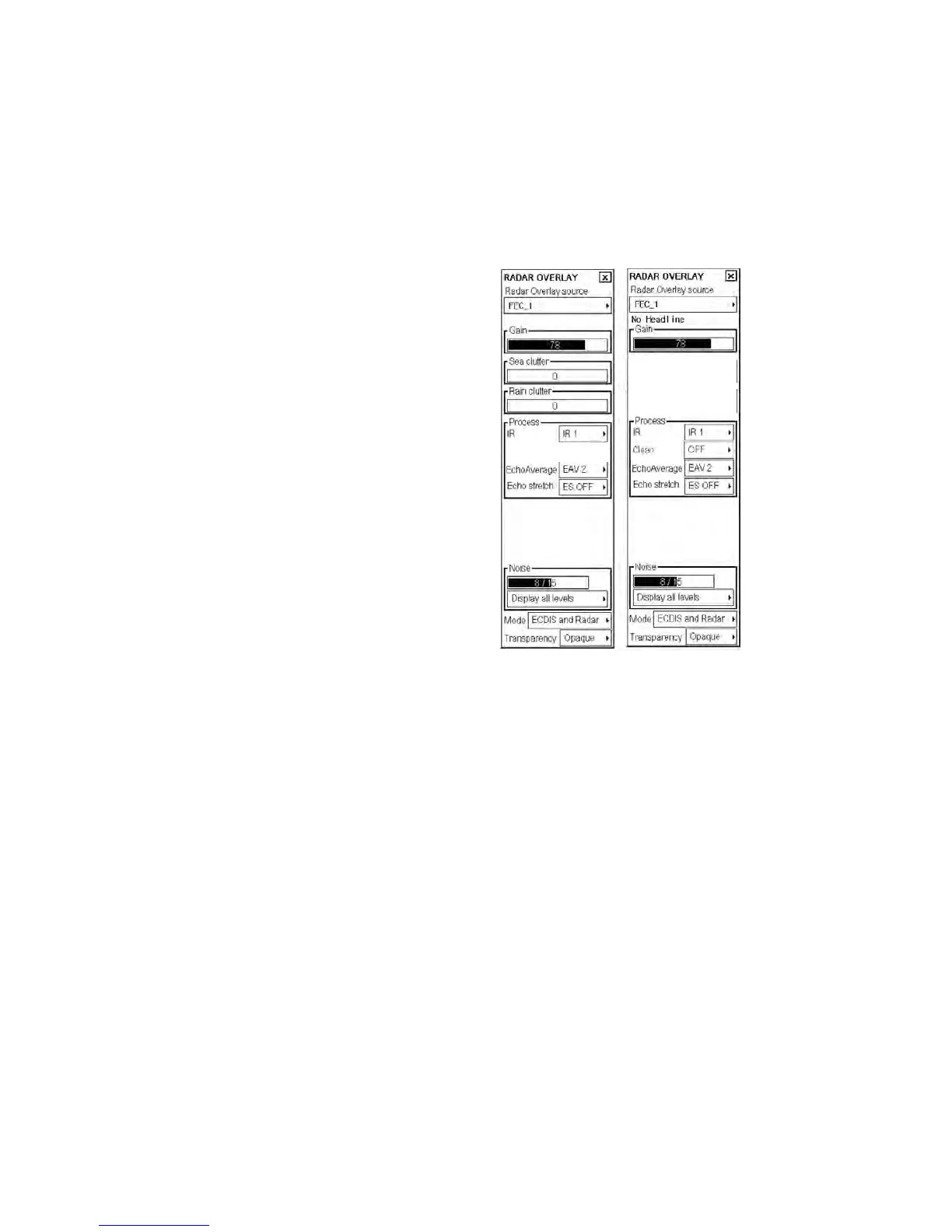 Note 1: Sea clutter and rain clutter controls are not available in Radar Overlay dialog box if radar video is received