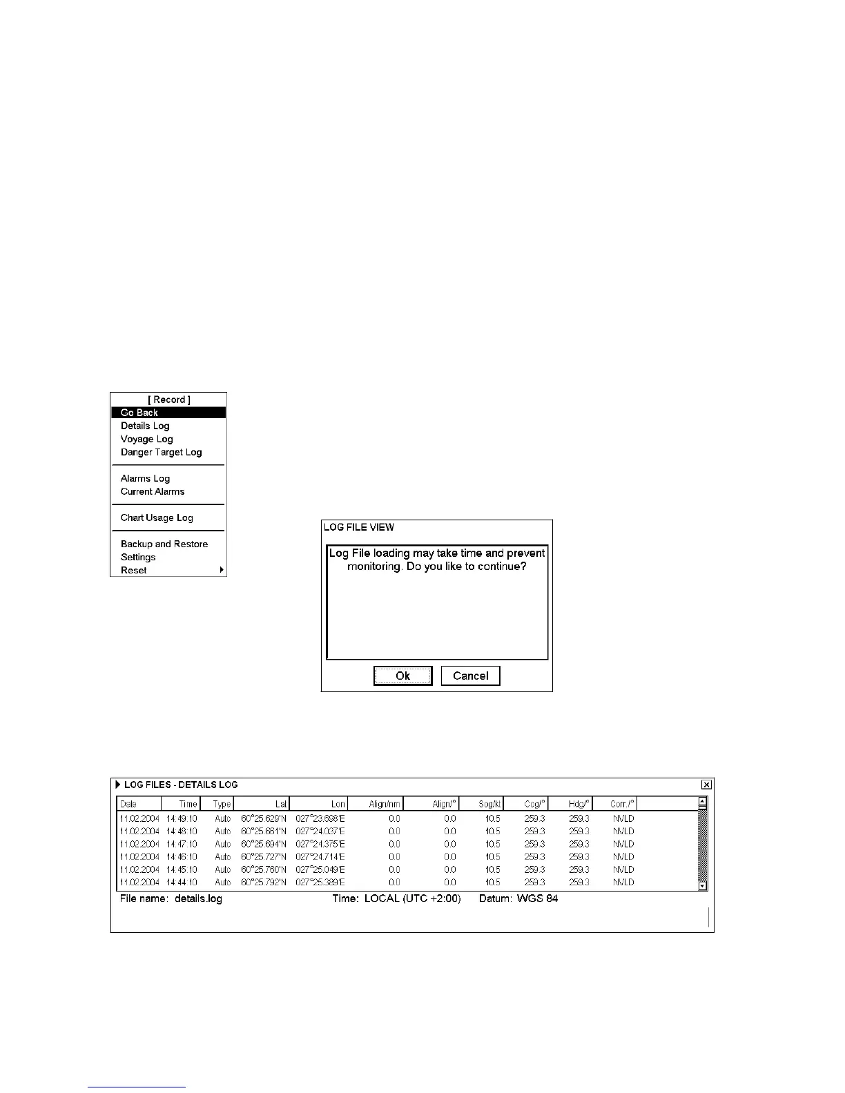 The details log contains voyage information of the last 12 hours. Various information is recorded in the details log