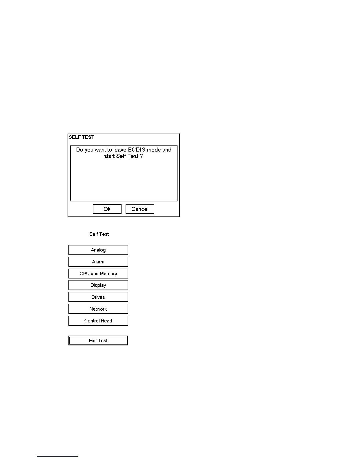 Note: During any self-test, the ECDIS becomes inoperative and this is indicated by sounding the buzzer and