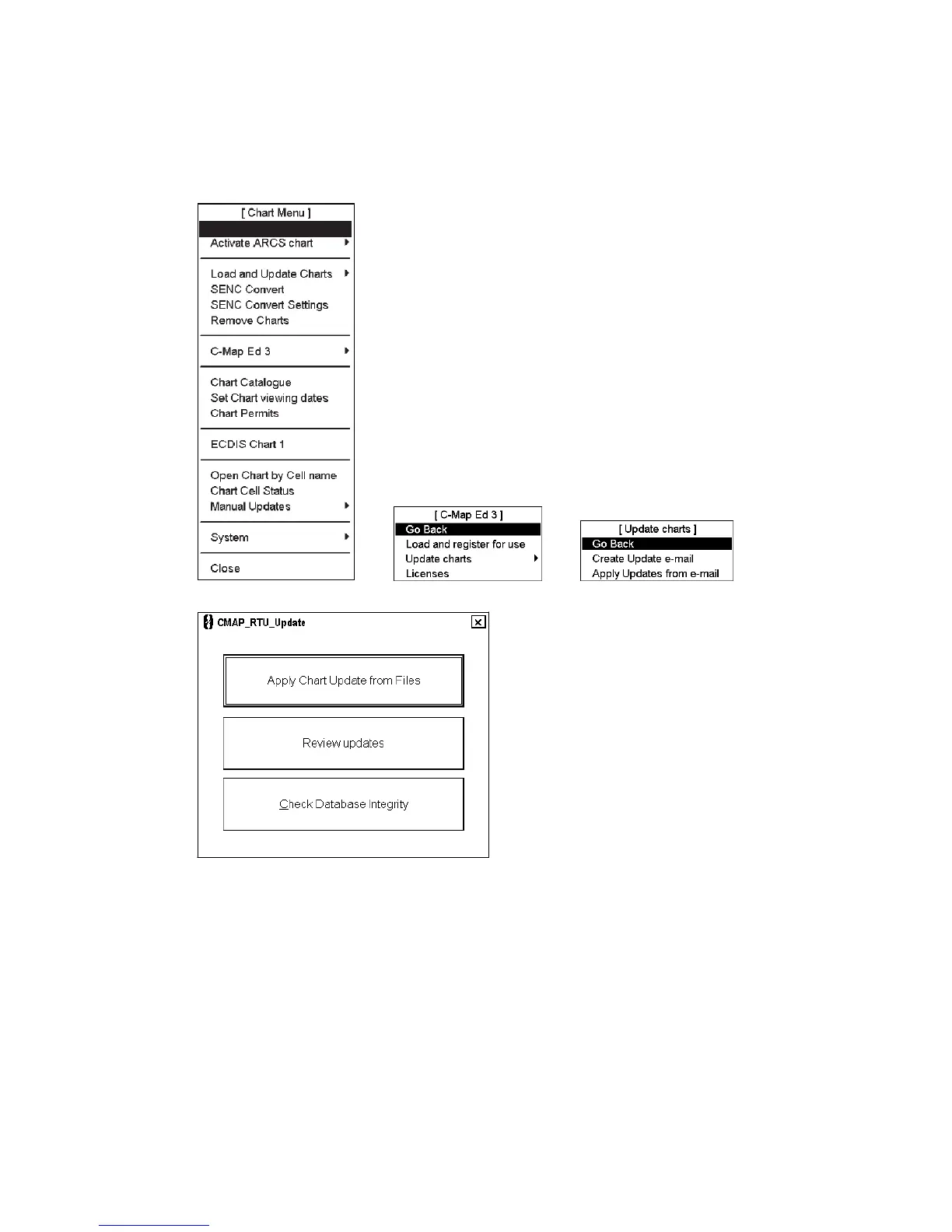 1. Open the Chart menu and select C-MAP Ed 3 in the menu. Select Update Charts in C-MAP Ed 3 menu and
