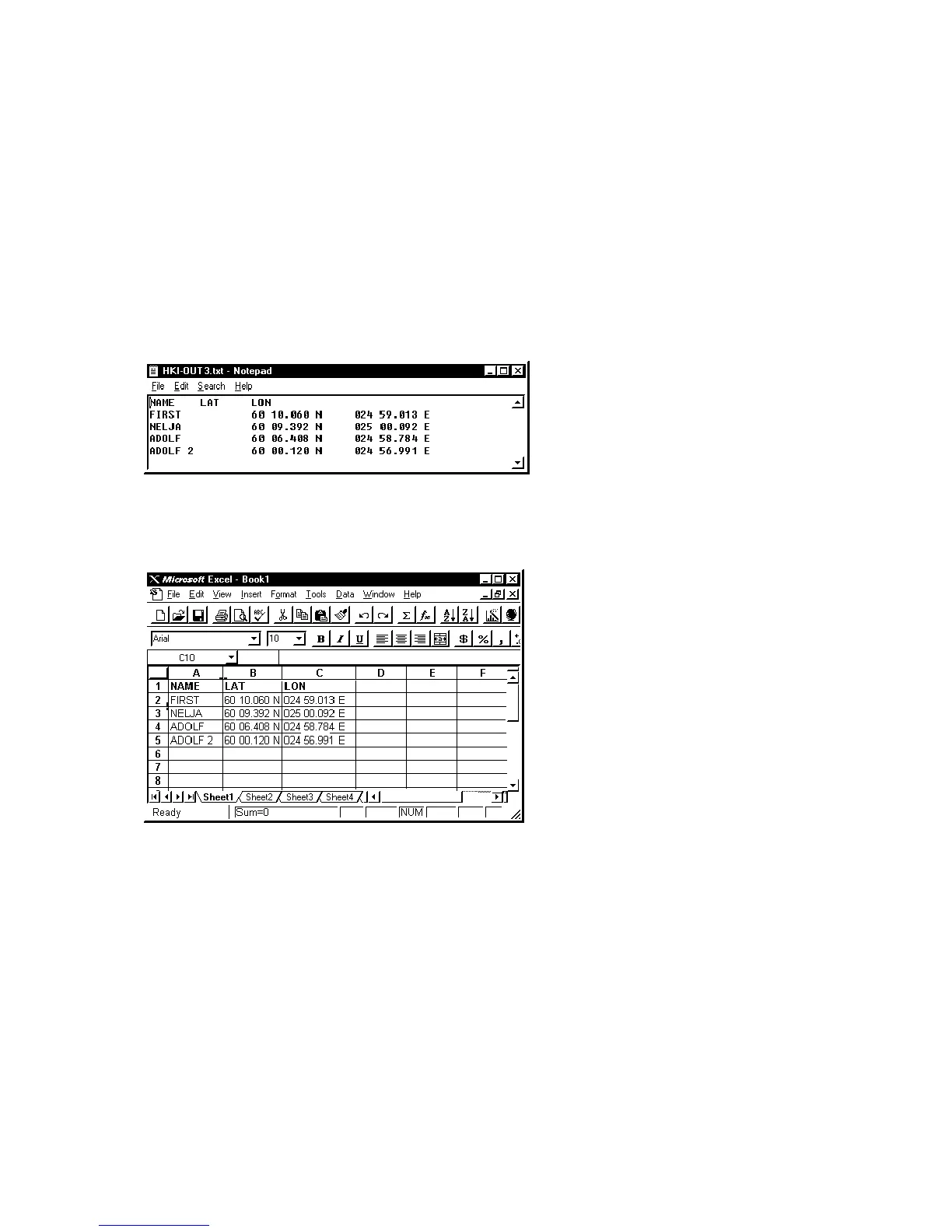 Below is an example of how to export waypoints' name and latitude/longitude values to a Microsoft Excel table.
