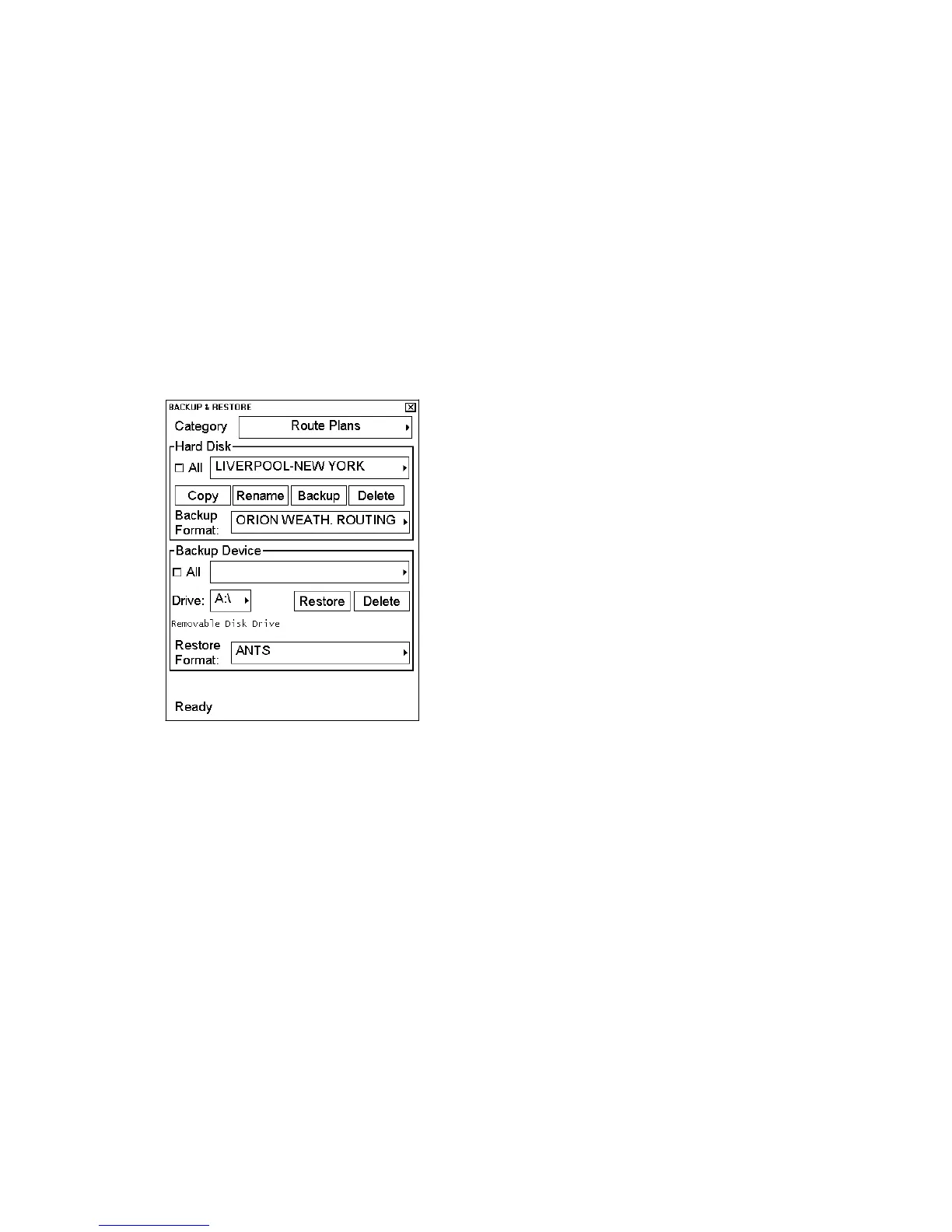 To make backup from a route in format, which can then be imported to Orion Pro weather routing program, do the