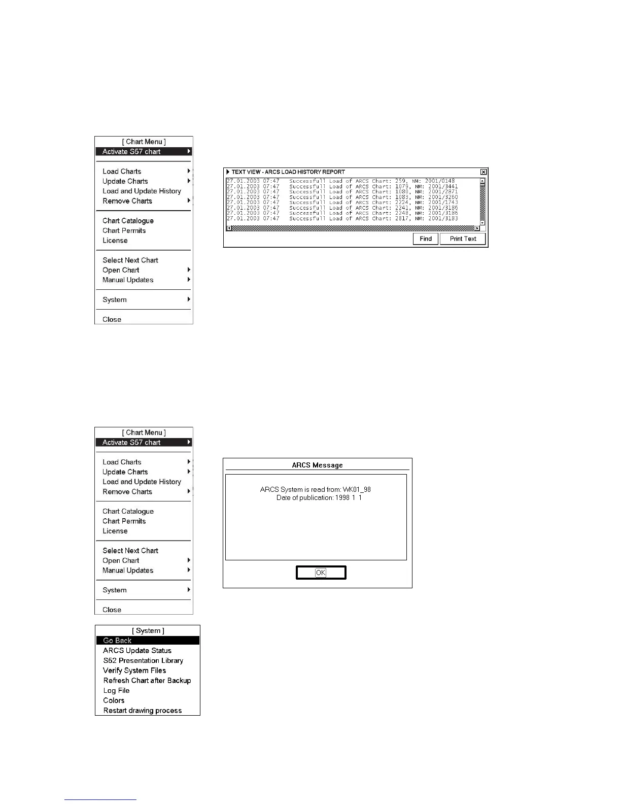 You may view a history of all chart load and updates (Notices to Mariners) of ARCS. This information is stored in