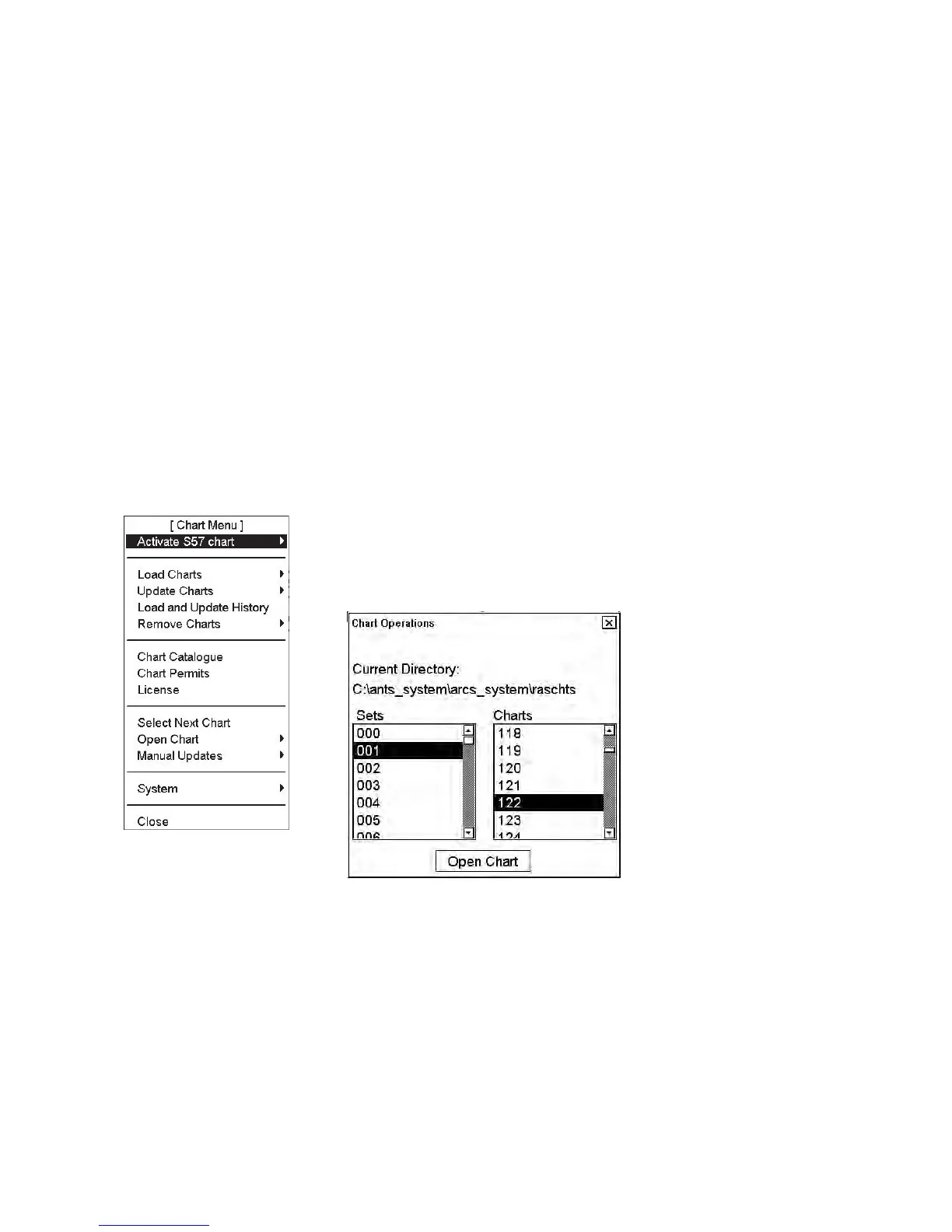 To show a specific ARCS format raster chart, use the "Open Chart" function as follows:
