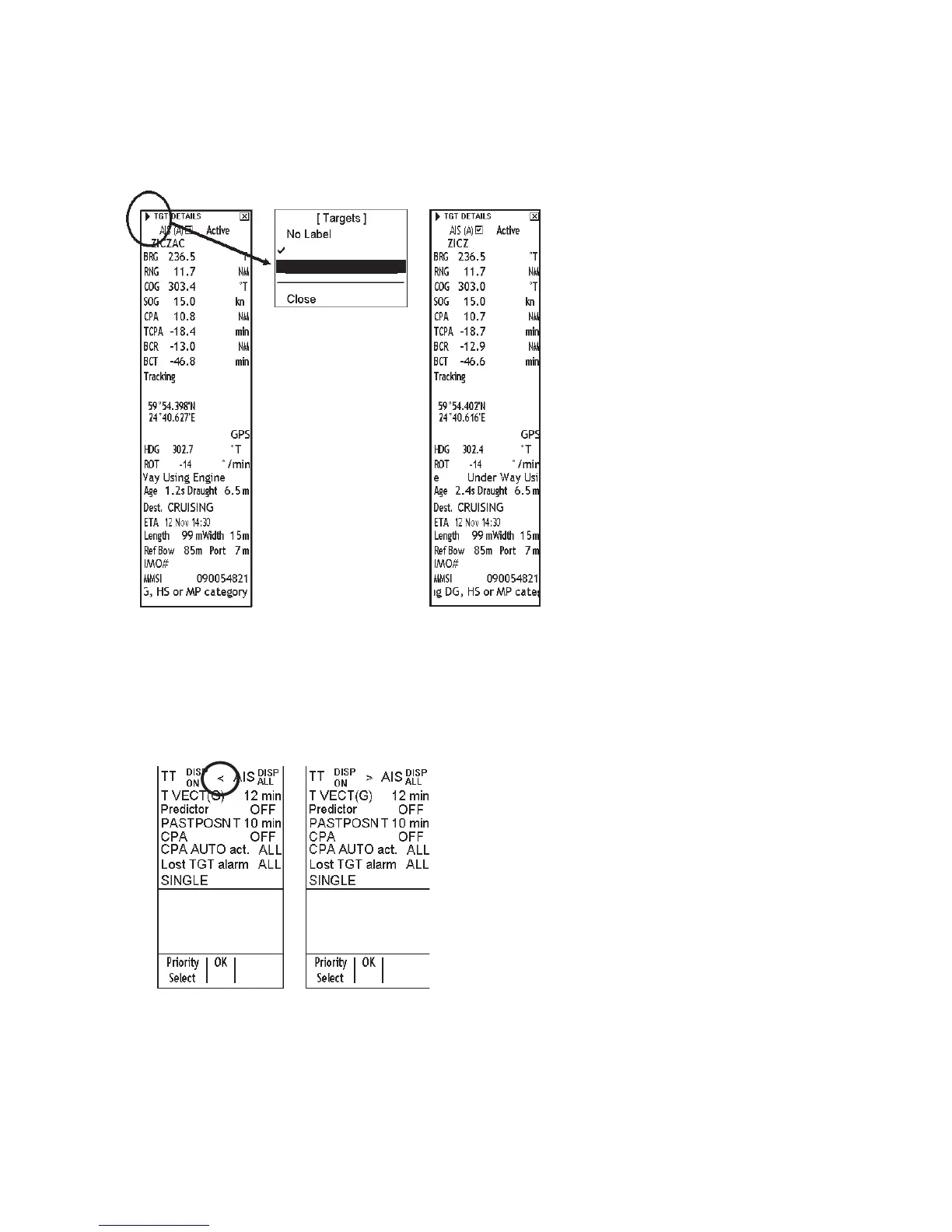 You can select whether TT or AIS has priority to display target data. This is useful when you have both TT and AIS