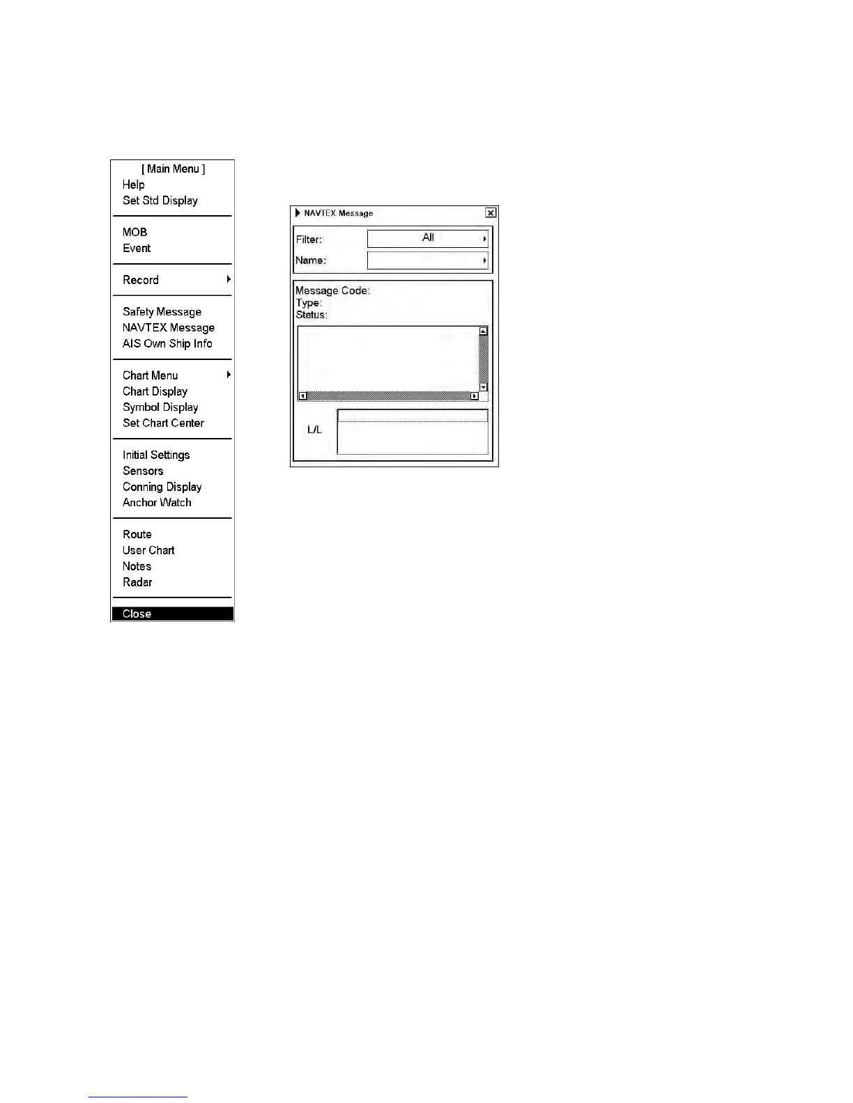 2. Select NAVTEX Message from the menu then push the scrollwheel.