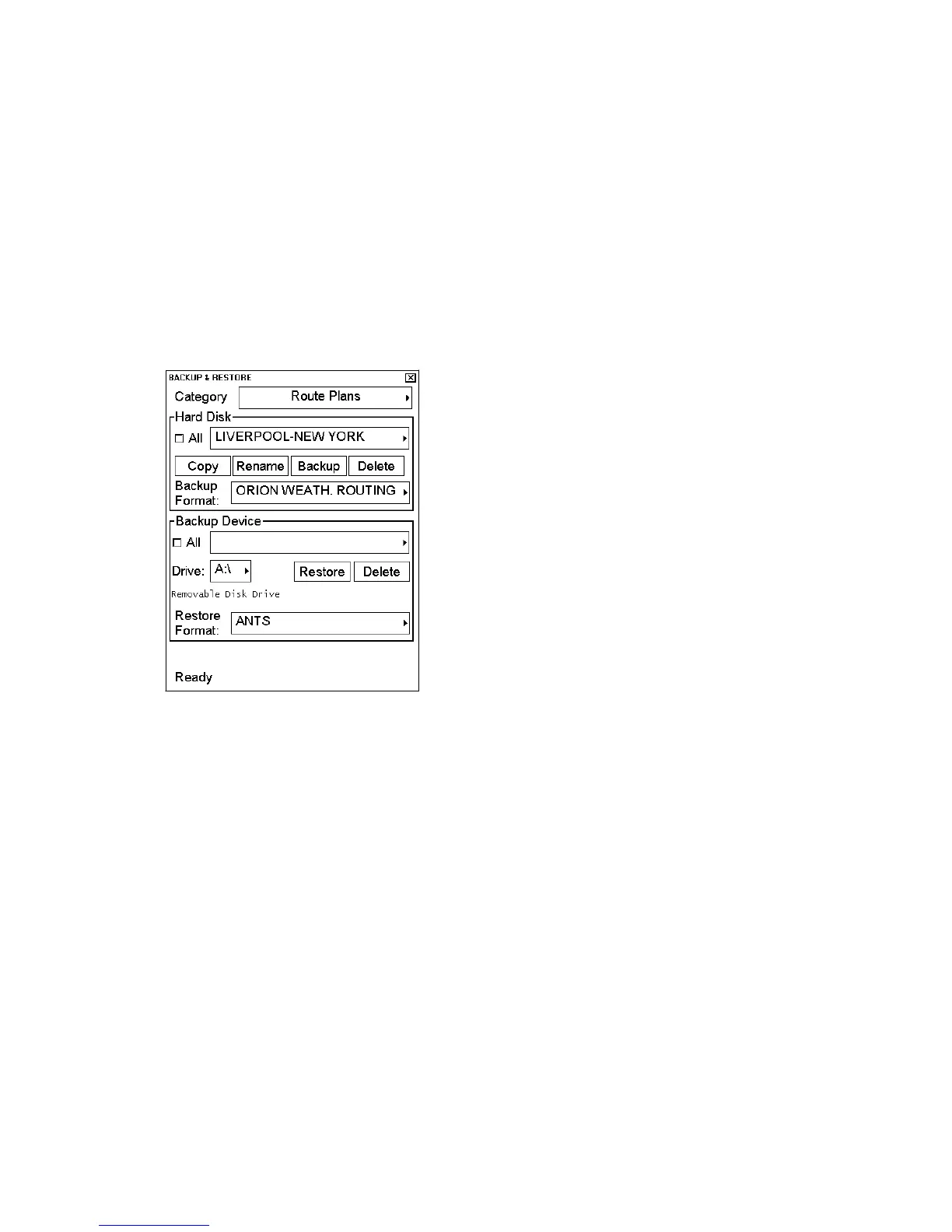3. In the Hard Disk field, select desired file from the list box and Orion weath. routing format with Backup