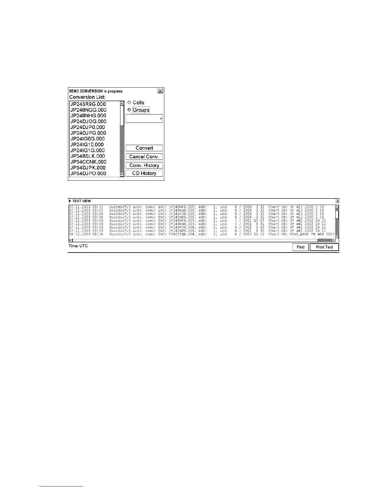converted charts. (You can also activate the Conv. History from the "Failed SENC conversions" window.)