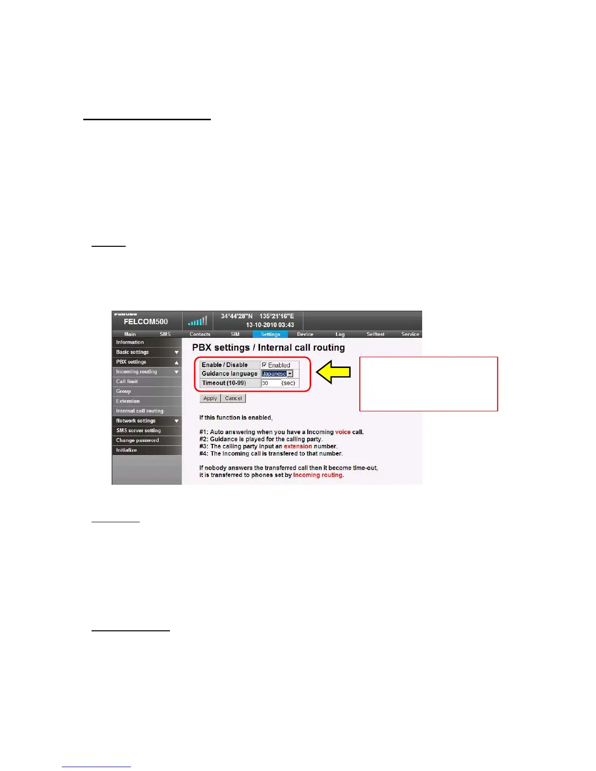 (1) Select [PBX settings] -> [Internal call routing] from [Settings] in the menu bar on