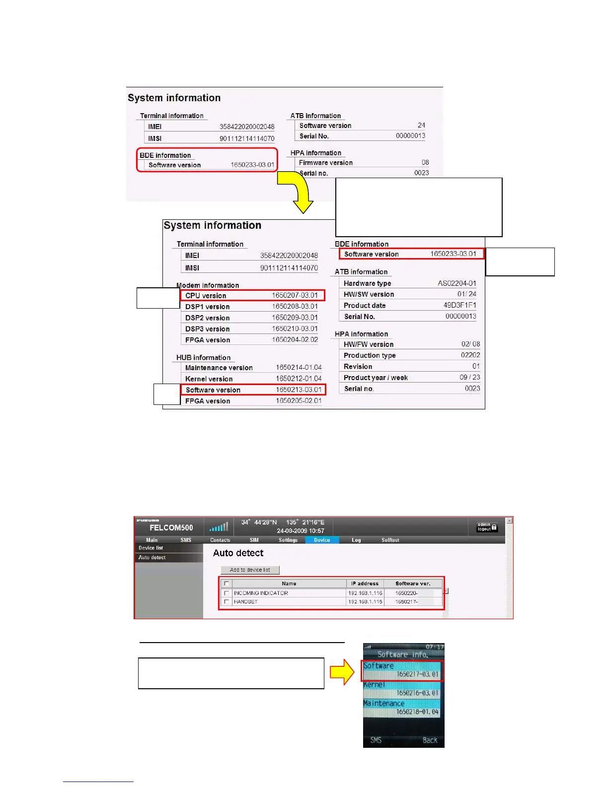 How to confirm the software of Handset and Incoming indicator