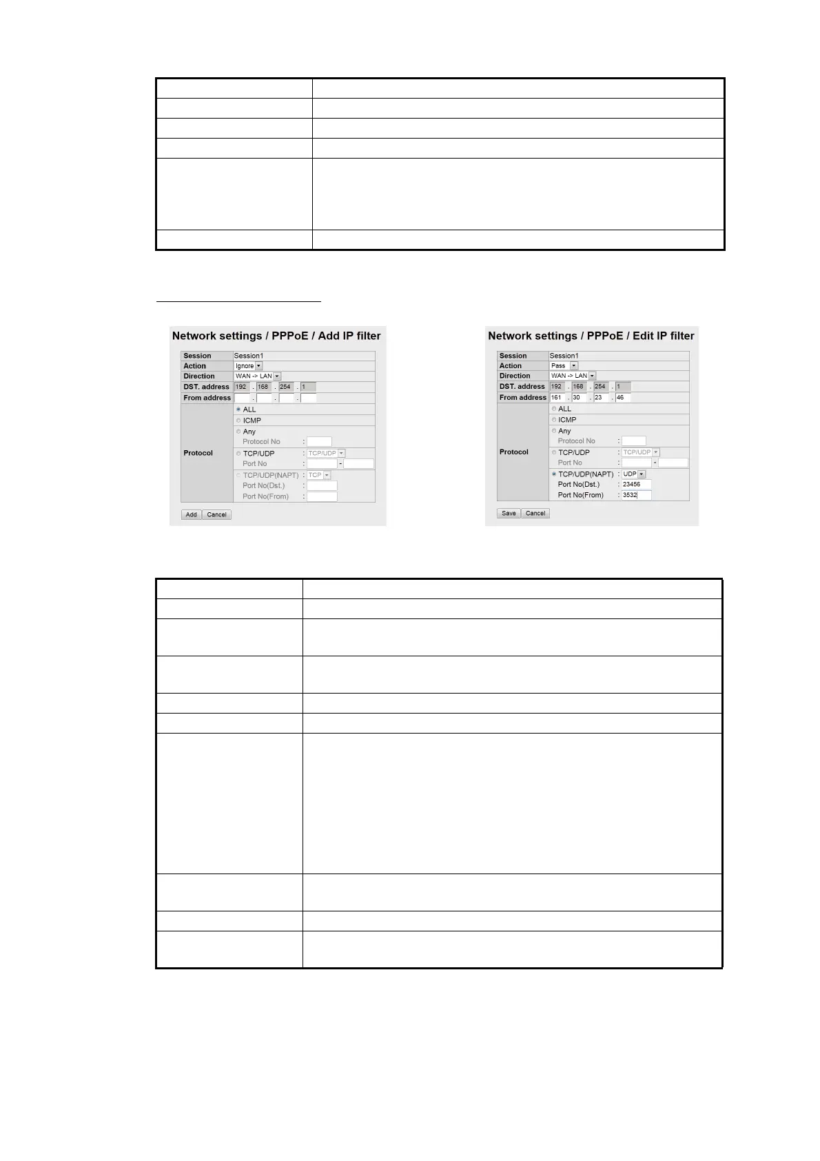 Action Select action (Ignore, Reject, Pass). Select [Pass] to set [TCP/