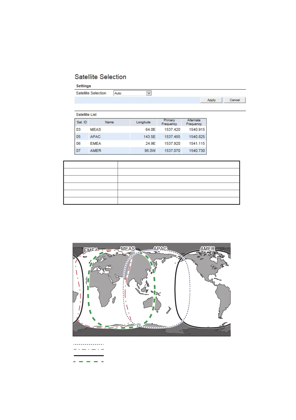 3. Select [AUTO], [APAC], [EMEA], [AMER], or [MEAS] at the [Satellite Selection]