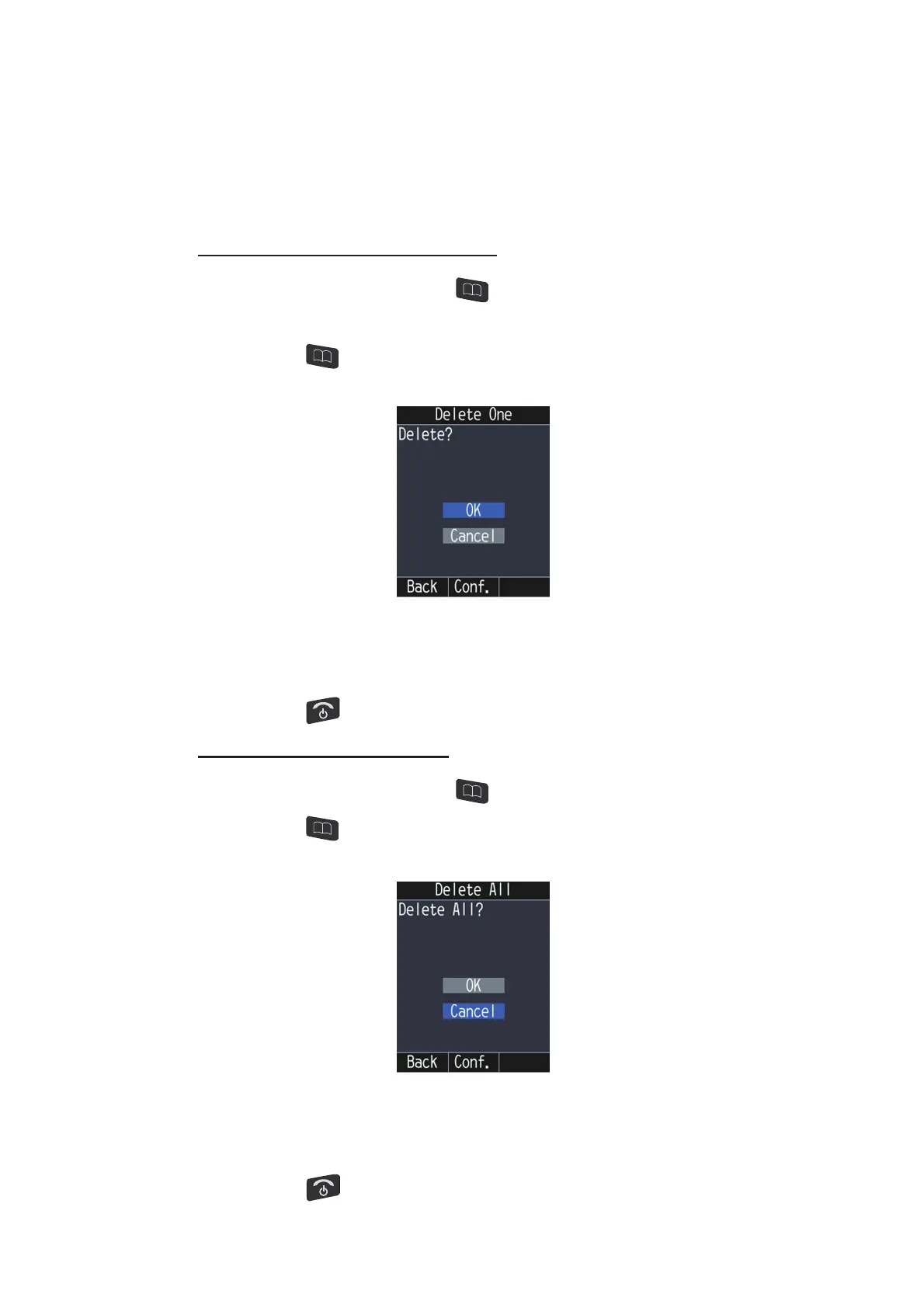 This section explains how to delete a contact registered in the [Contacts] list as fol-