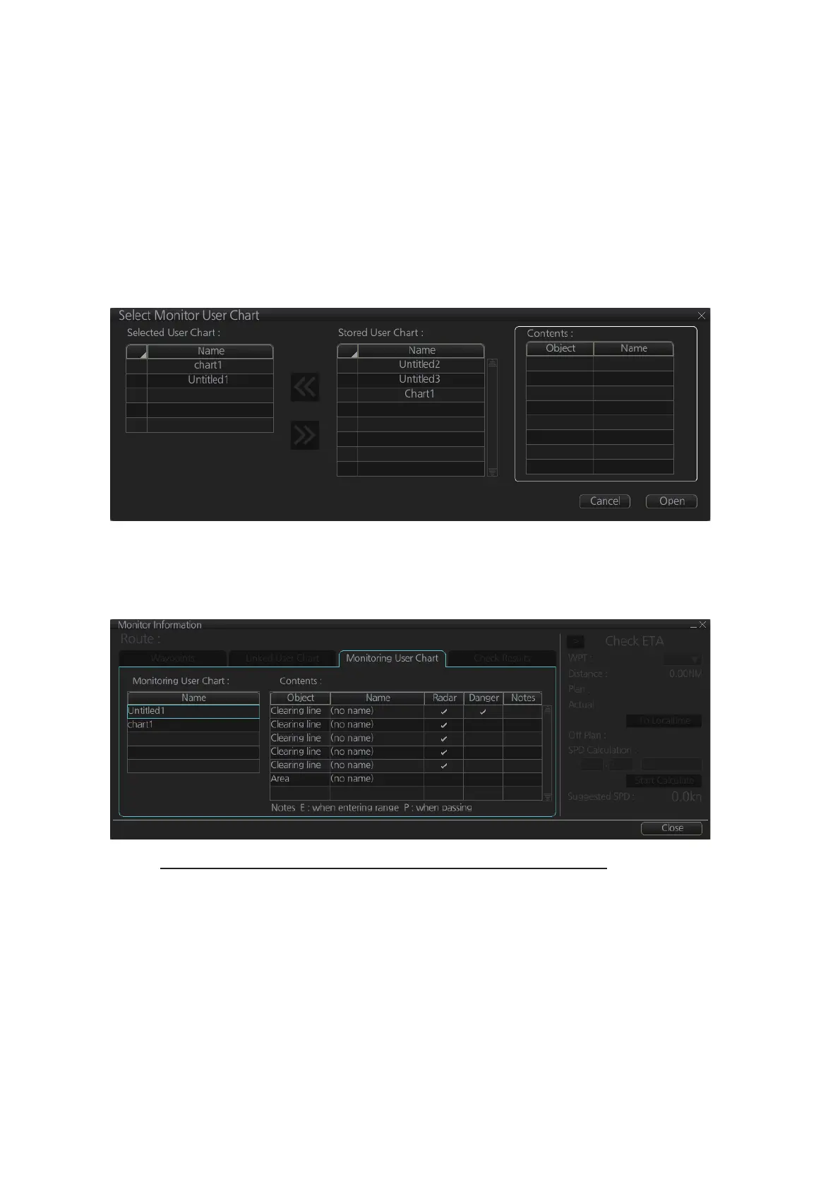 and shows the user charts selected for use in route monitoring. Click a user chart