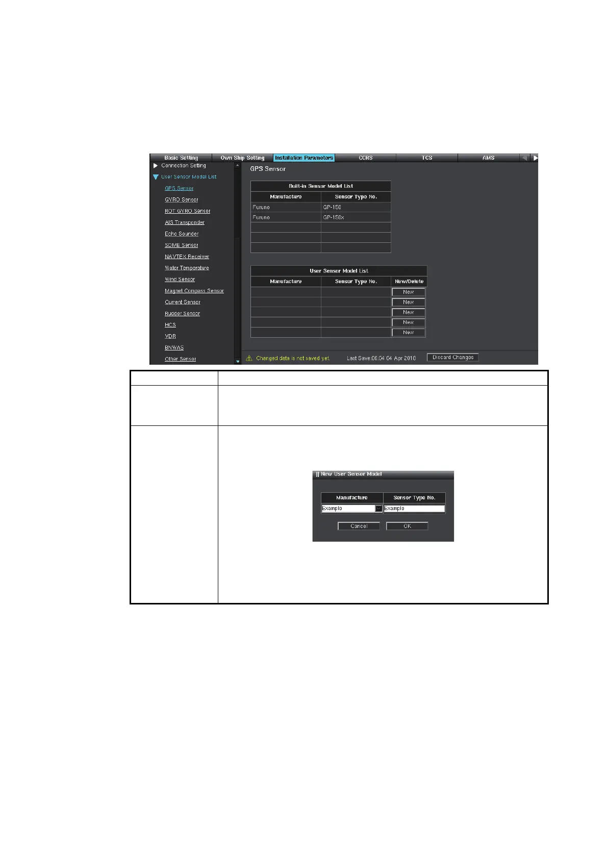 Set the sensor types and manufacturers in the [Sensor Setting] menu.