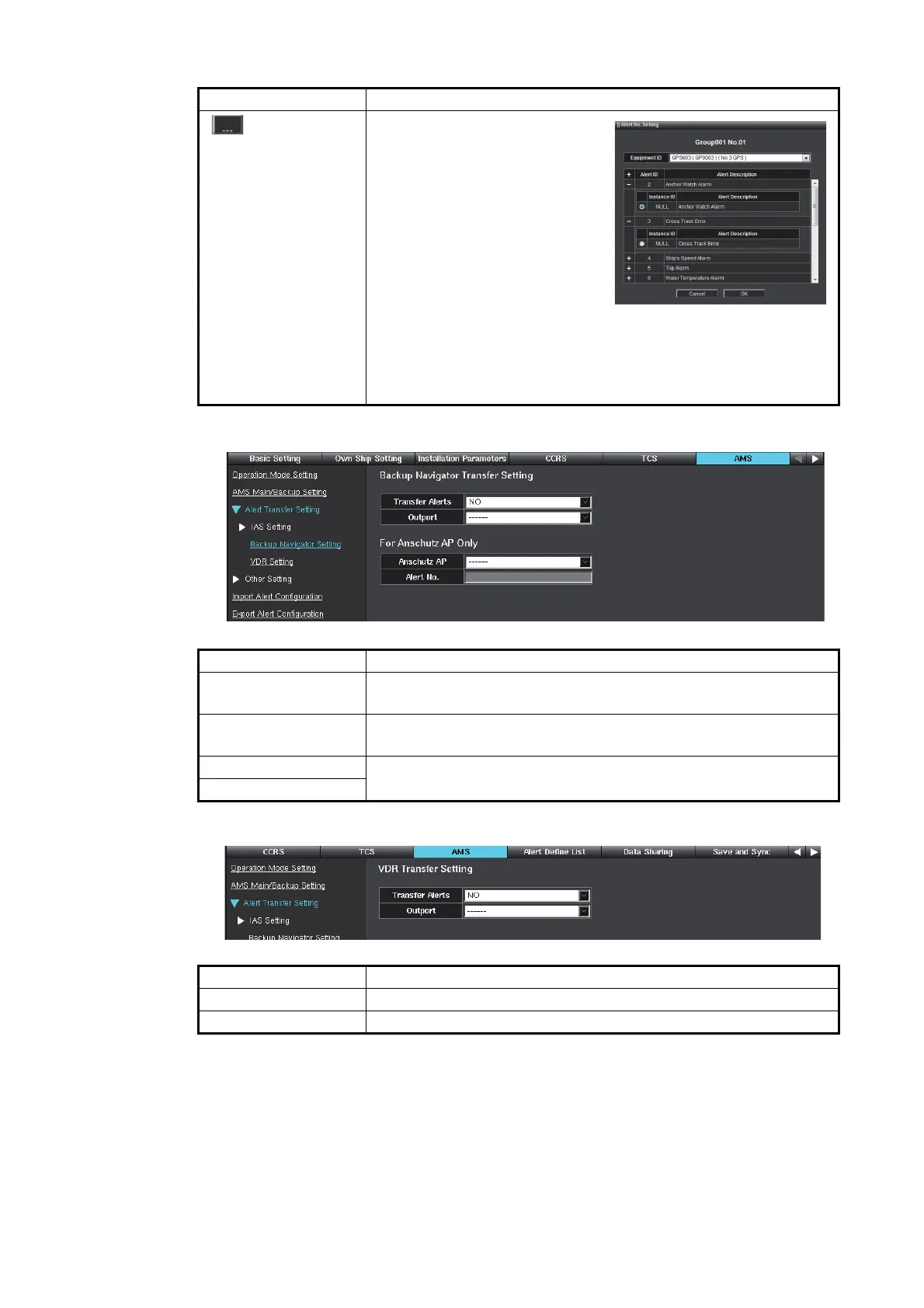 4. Select [Alert Transfer Setting] and [Backup Navigator Setting] on the menu bar.