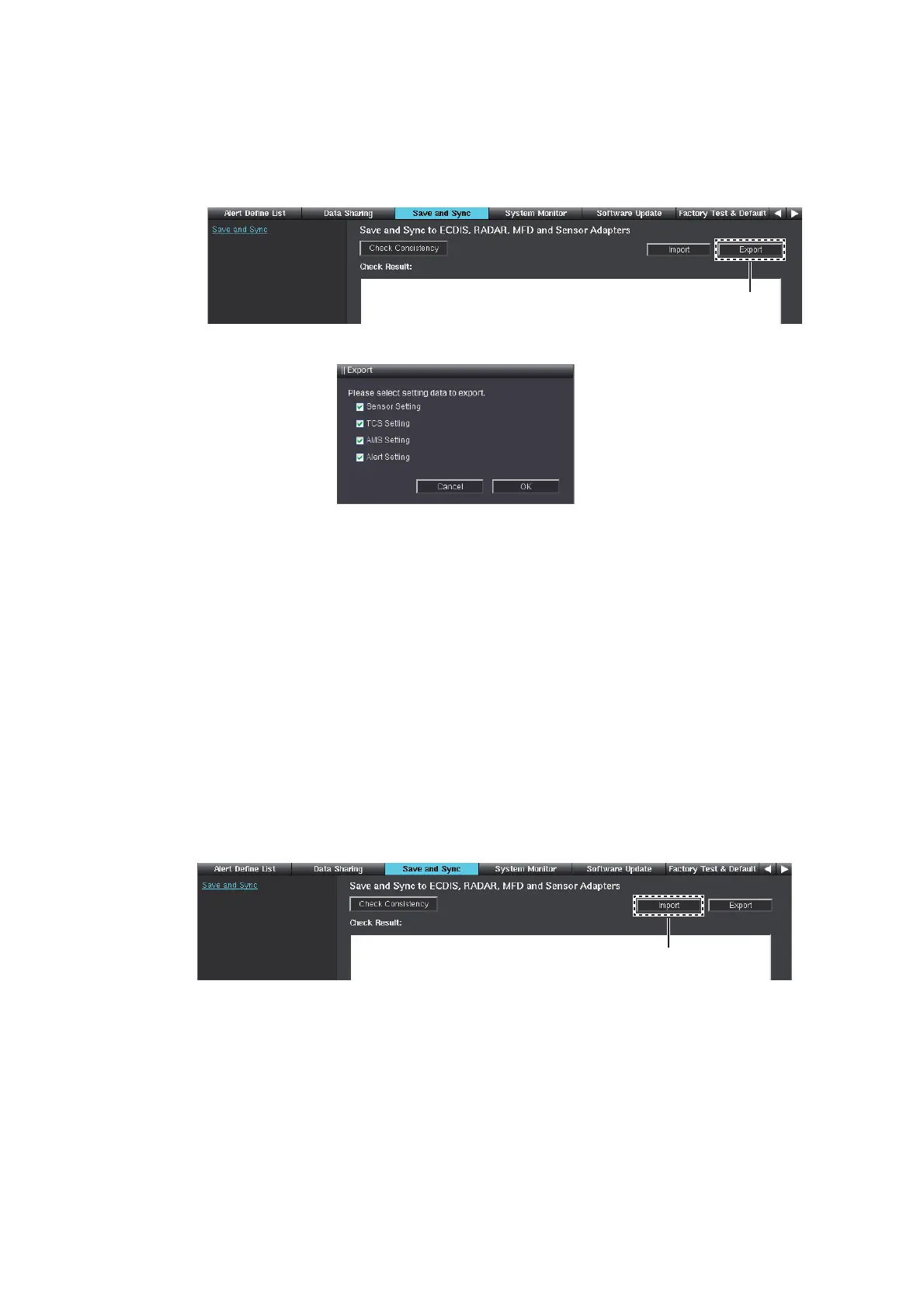 • [Sensor Setting]: Configuration data on the [Own Ship Setting], [Installation Pa-