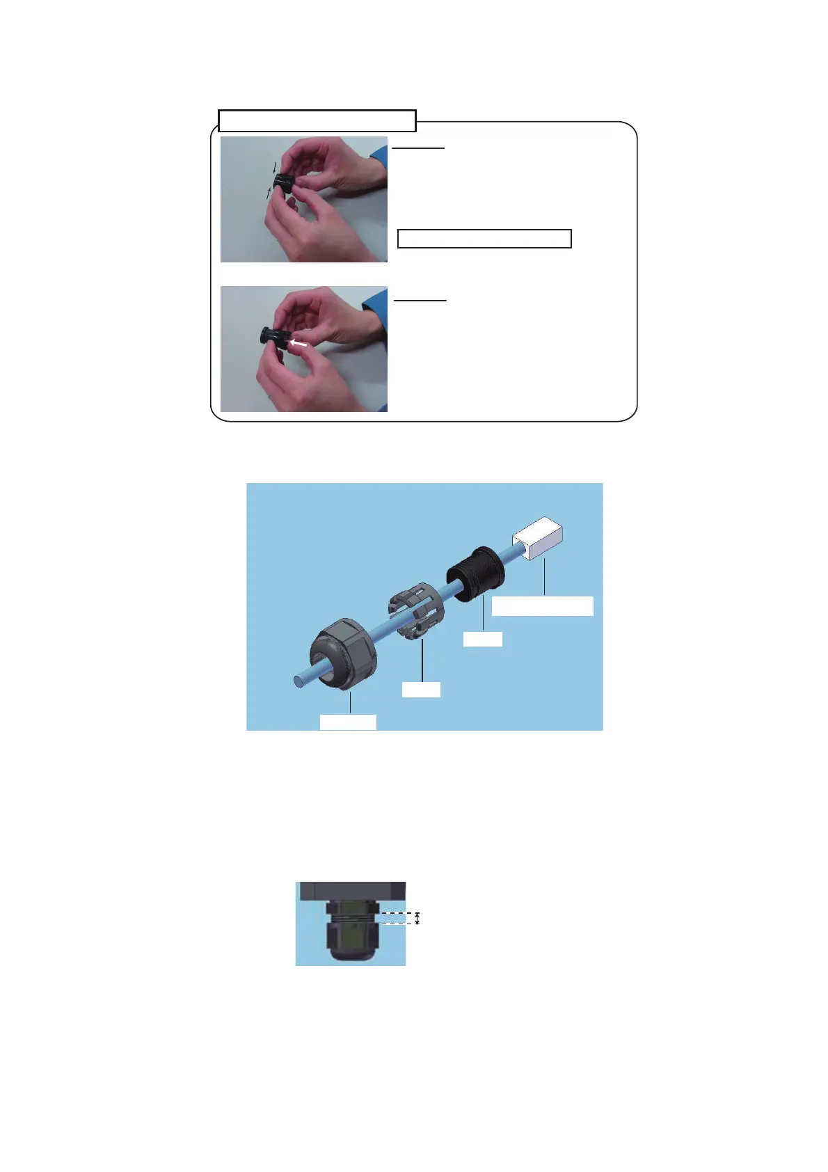 6. Fasten the seal nut and secure the cable. Continue to fasten the nut until the