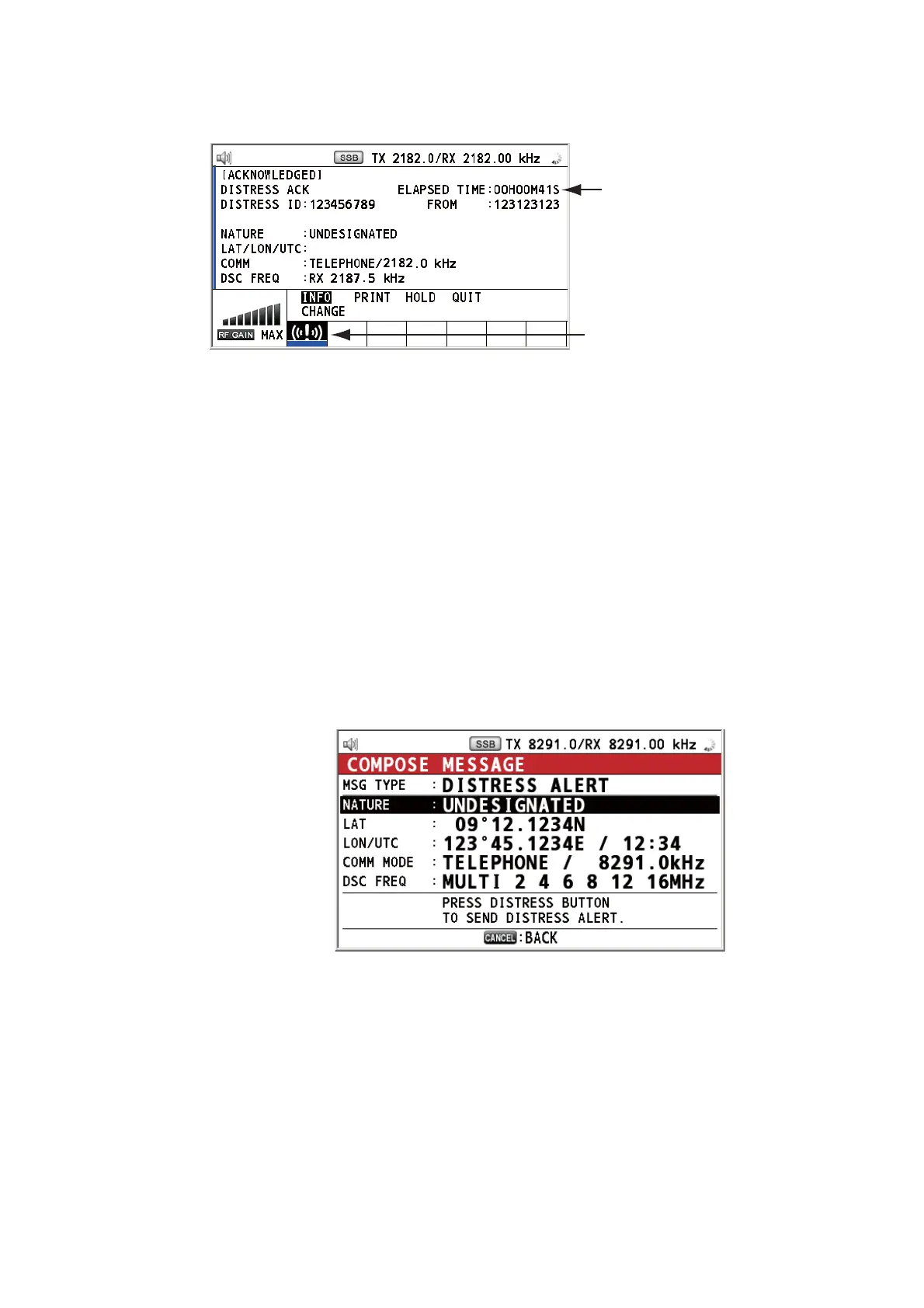 below. If the distress alert was sent using the MULTI mode, the radiotelephone