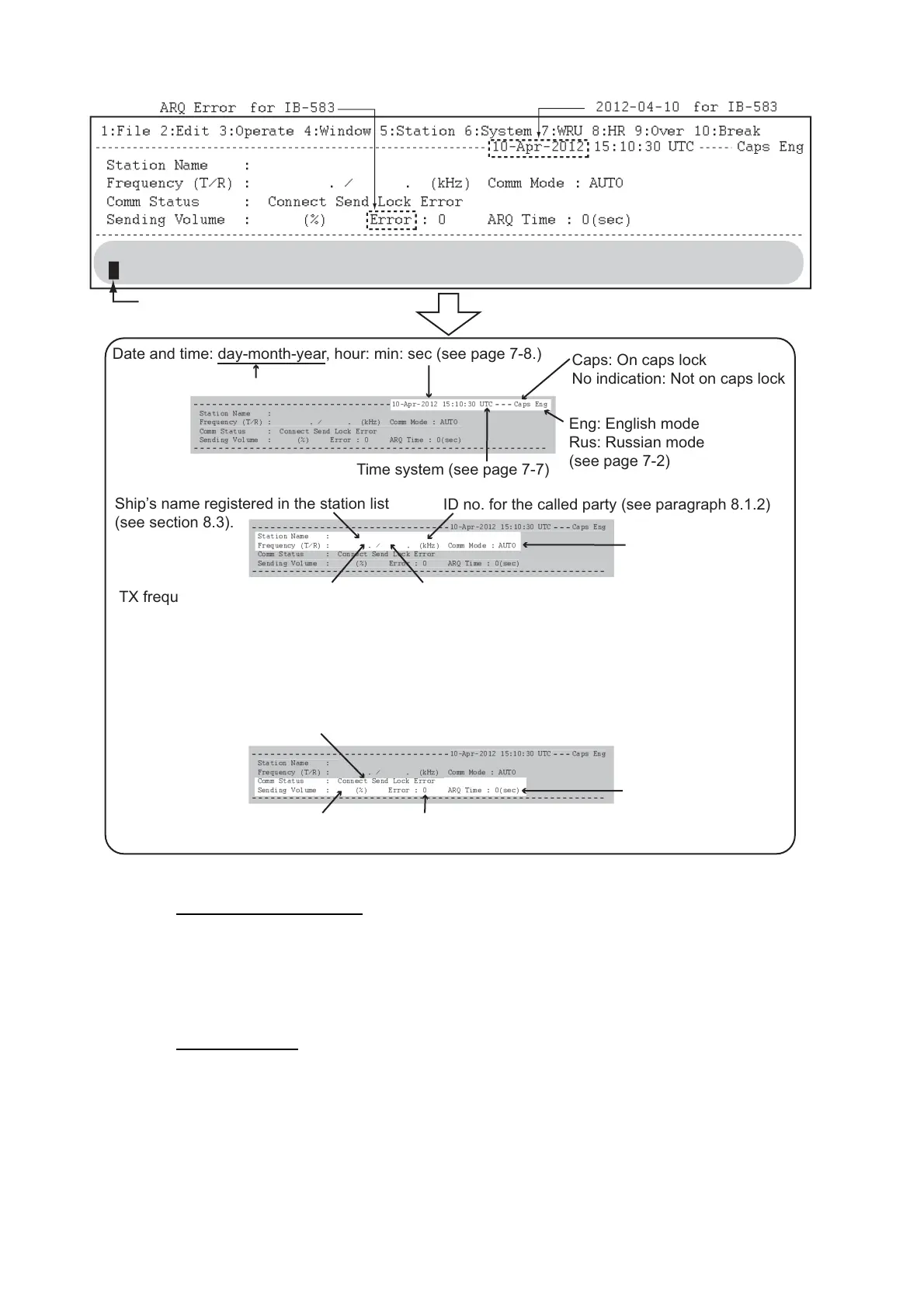Frequency (T/R) : . / . (kHz) Comm Mode : AUTO