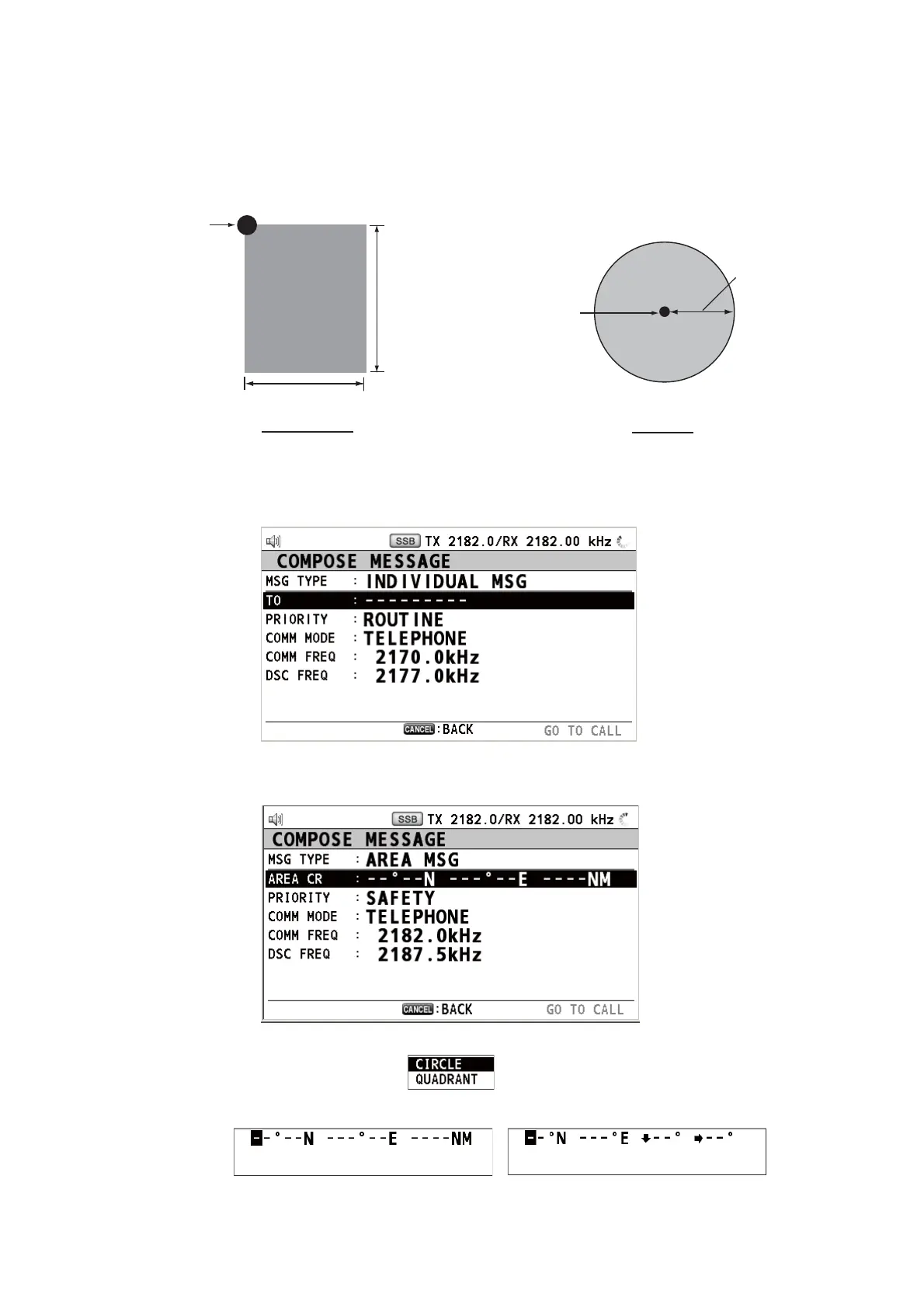 5. Rotate the ENTER knob to select [CIRCLE] or [QUADRANT] then push the knob.