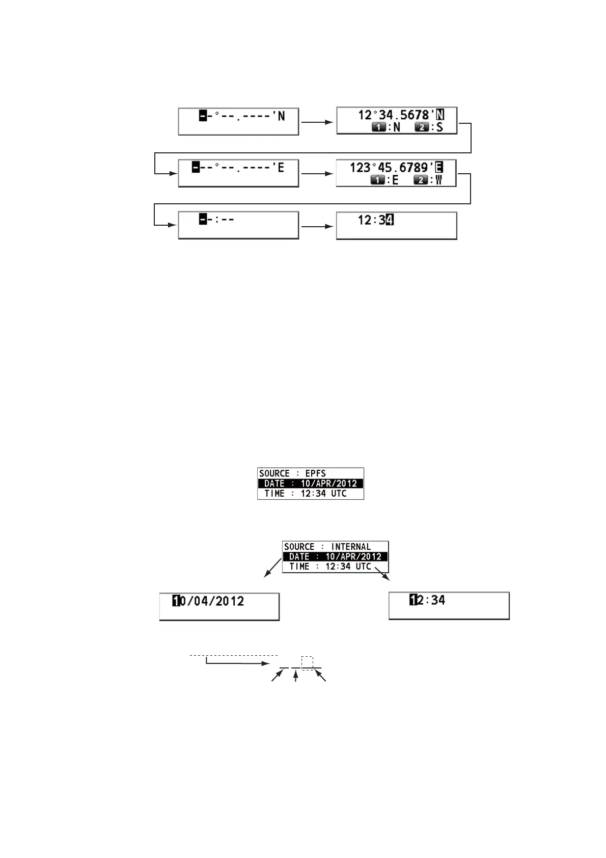 5. For manual input, use the numeric keys to enter latitude/longitude of your position,