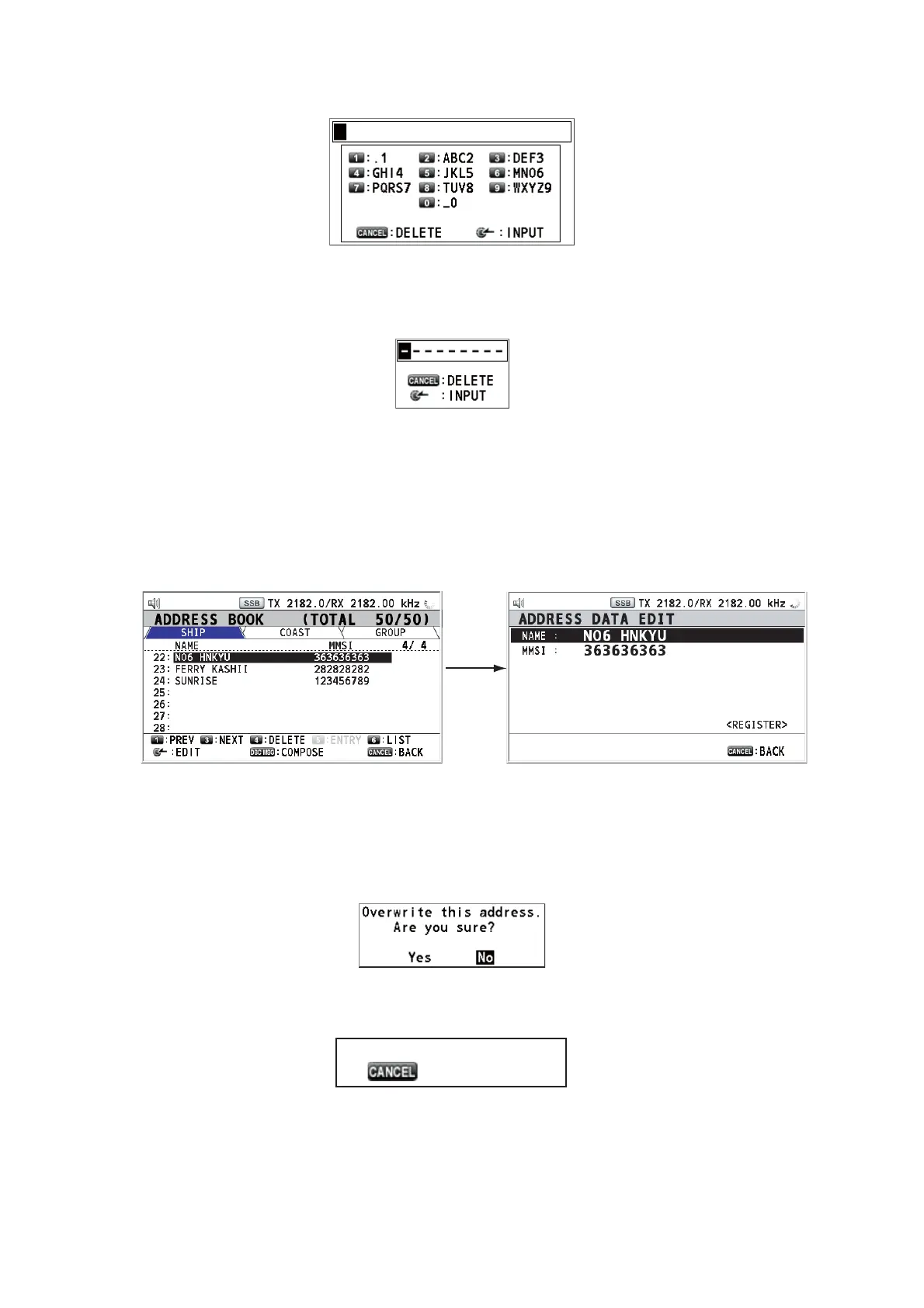 4. Enter the address name or MMSI with the numeric keys then push the ENTER