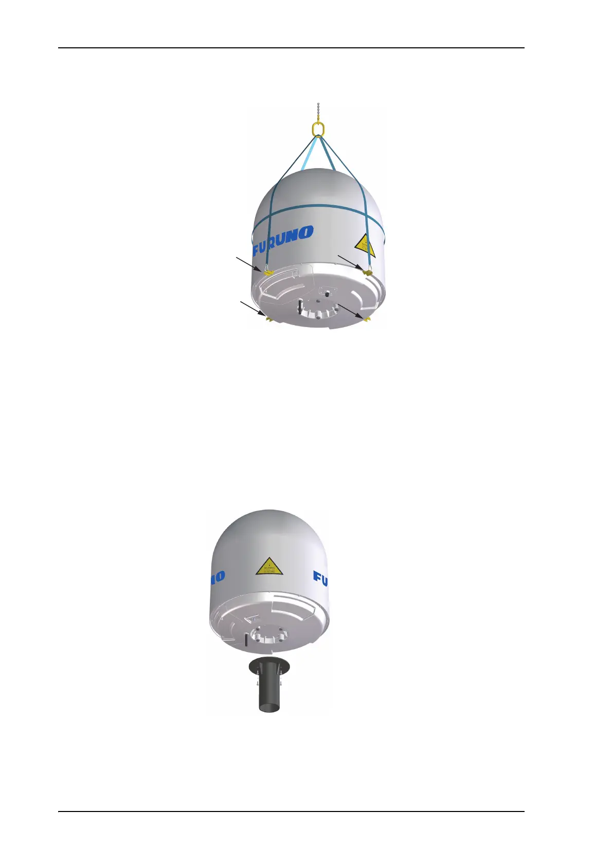 7. Install the ADU on the mast flange with 4 M12 bolts and washers.Read carefully and