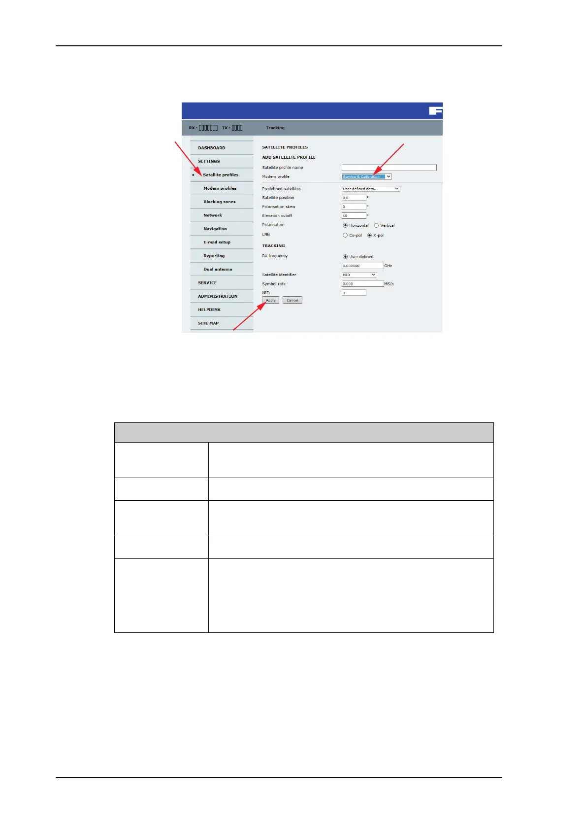 3. Select the VSAT modem profile Service & Calibration from the drop-down list.