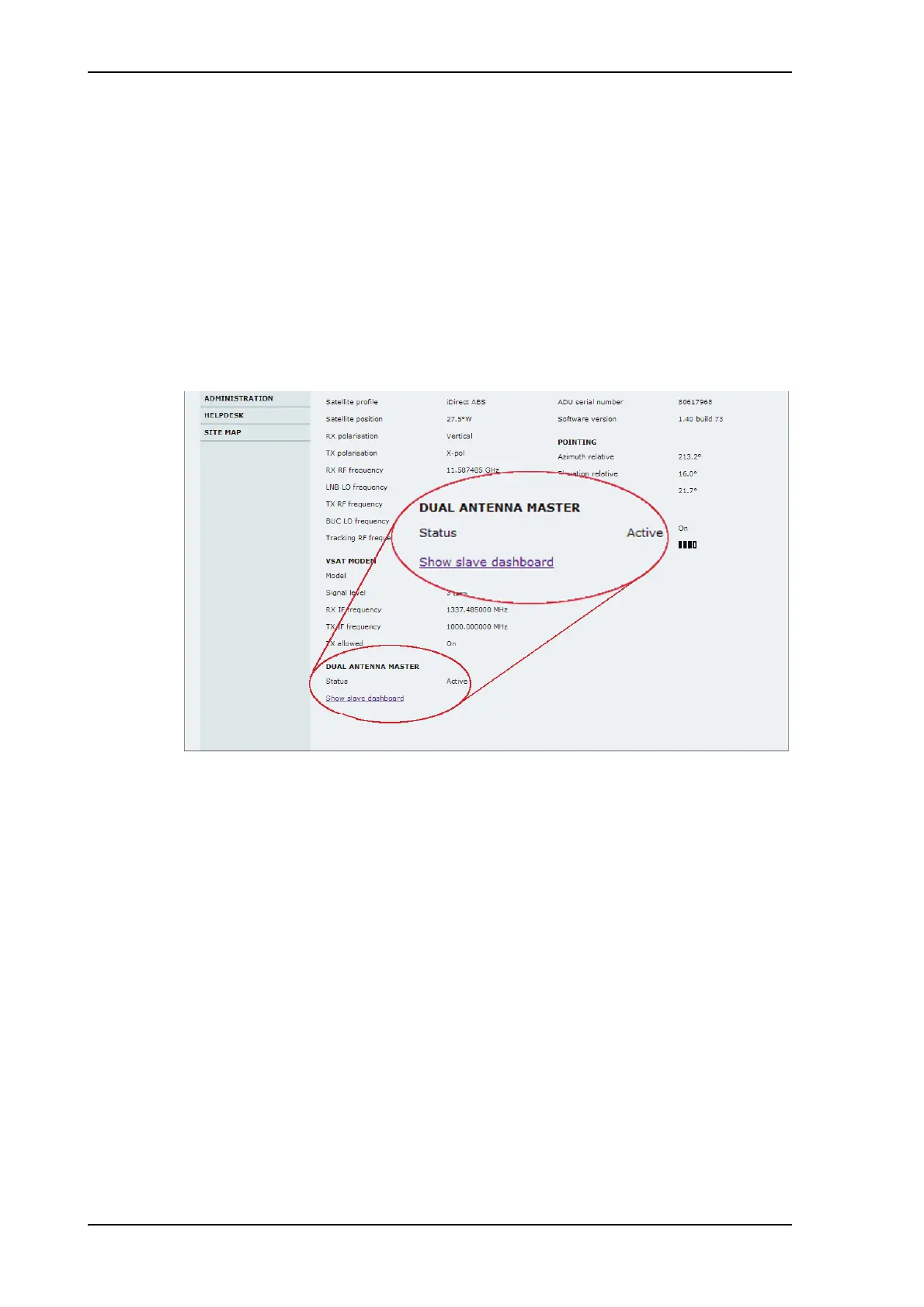Figure 5-27: Dual-antenna mode, link on DASHBOARD