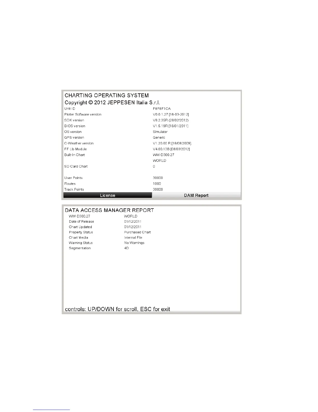 operating system display. Select [License] or [DAM Report] to show the respective dis-