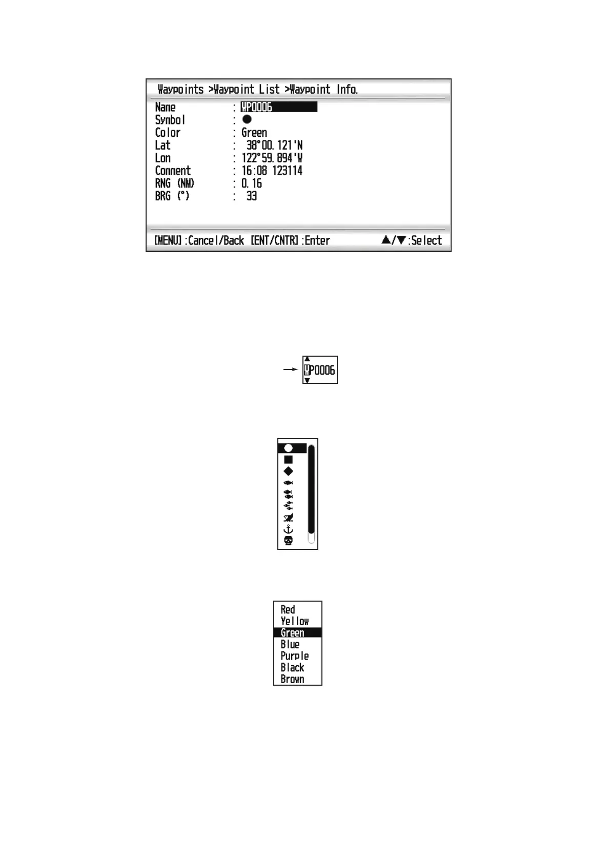6. To change the waypoint name, press the ENT/CNTR key.