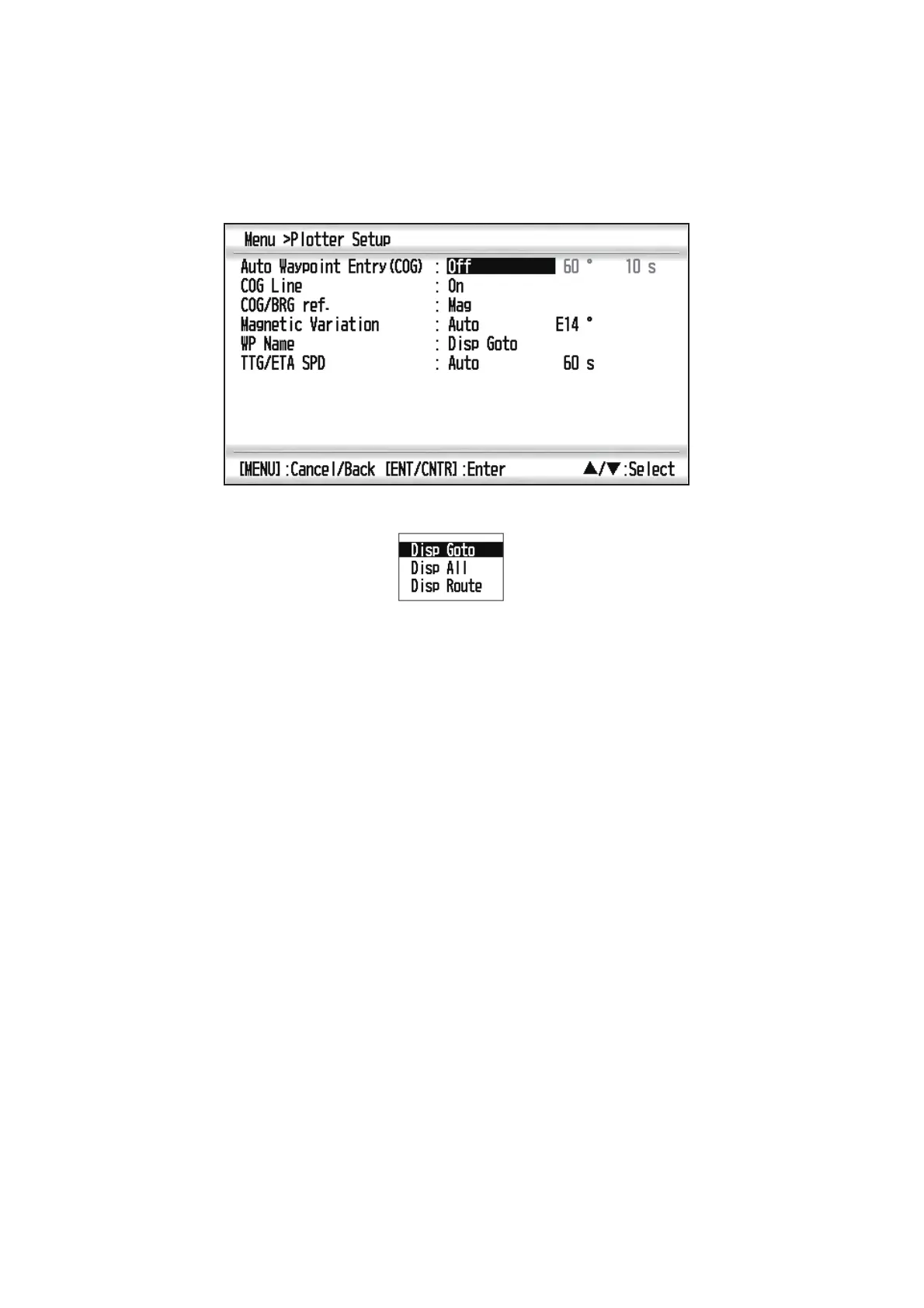 4. Select [Disp Goto], [Disp All] or [Disp Route], and press the ENT/CNTR key.