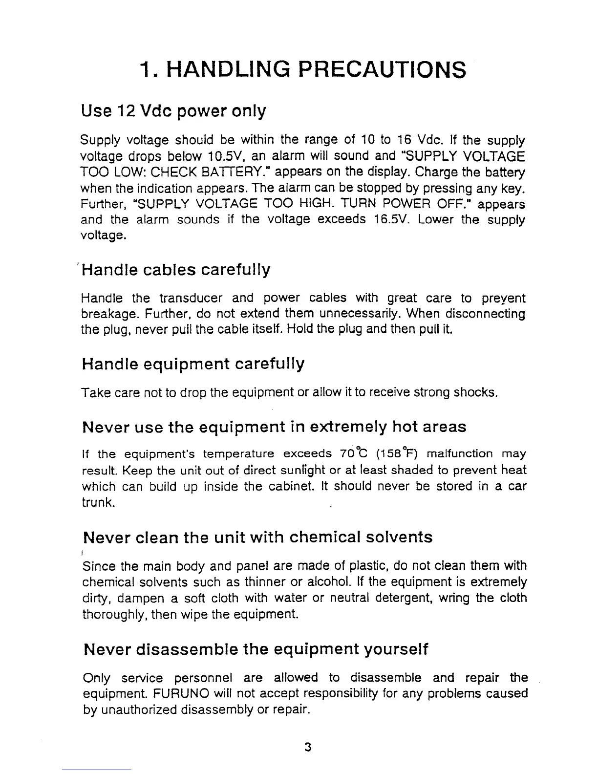 Furuno LS-6000 - HANDLING PRECAUTIONS; Equipment Handling and Environment