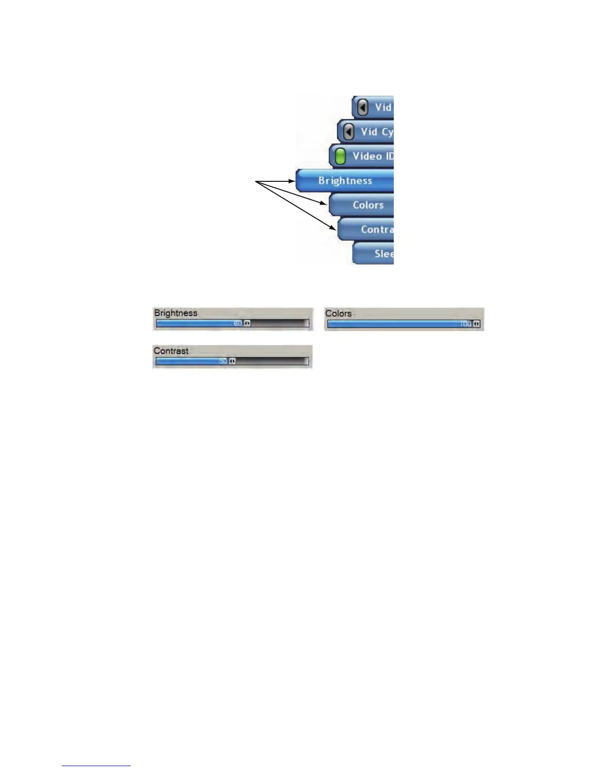1. Long-push the RotoKey to show the soft controls that adjust the video signal.