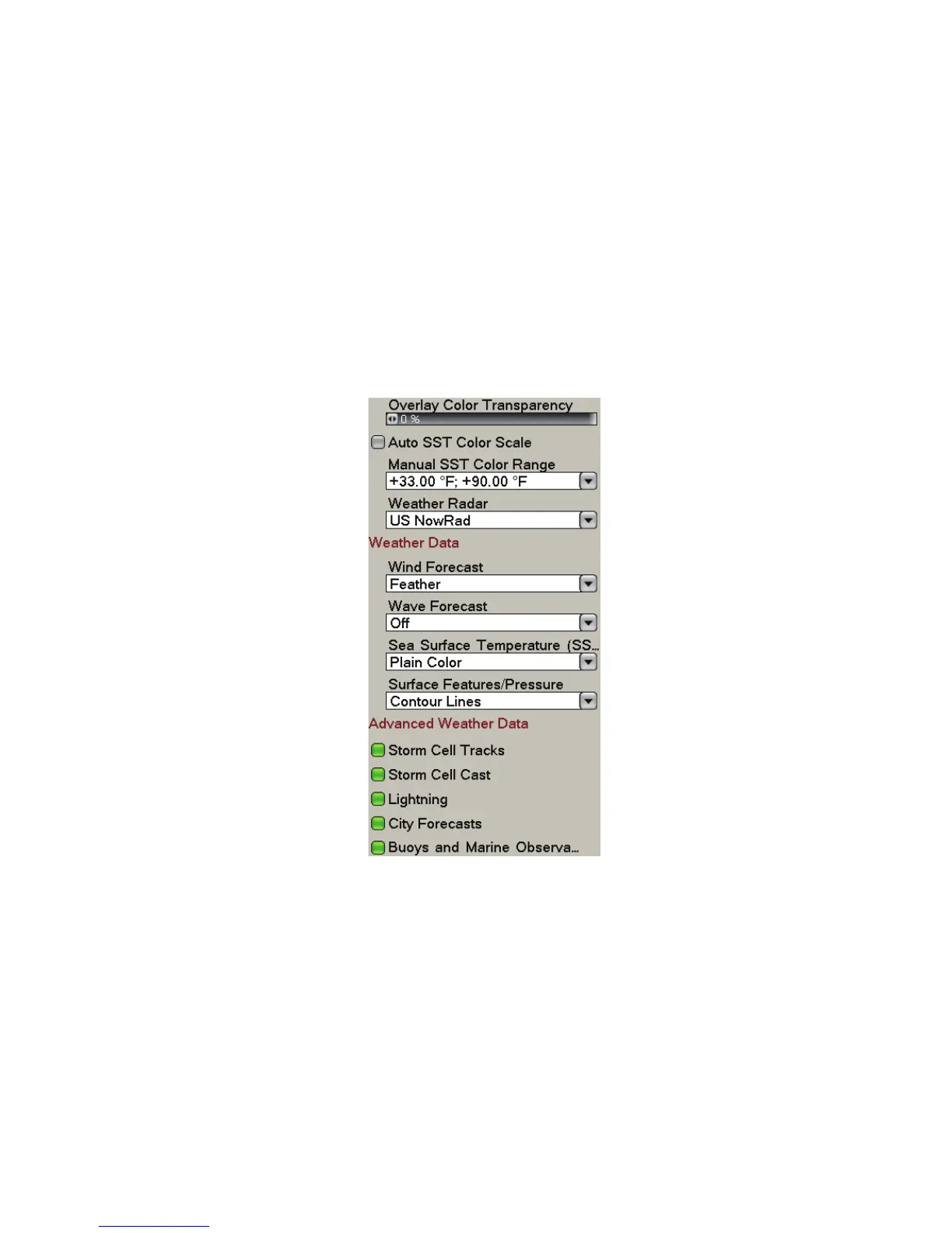 The [Weather] menu adjusts the following weather-related items: