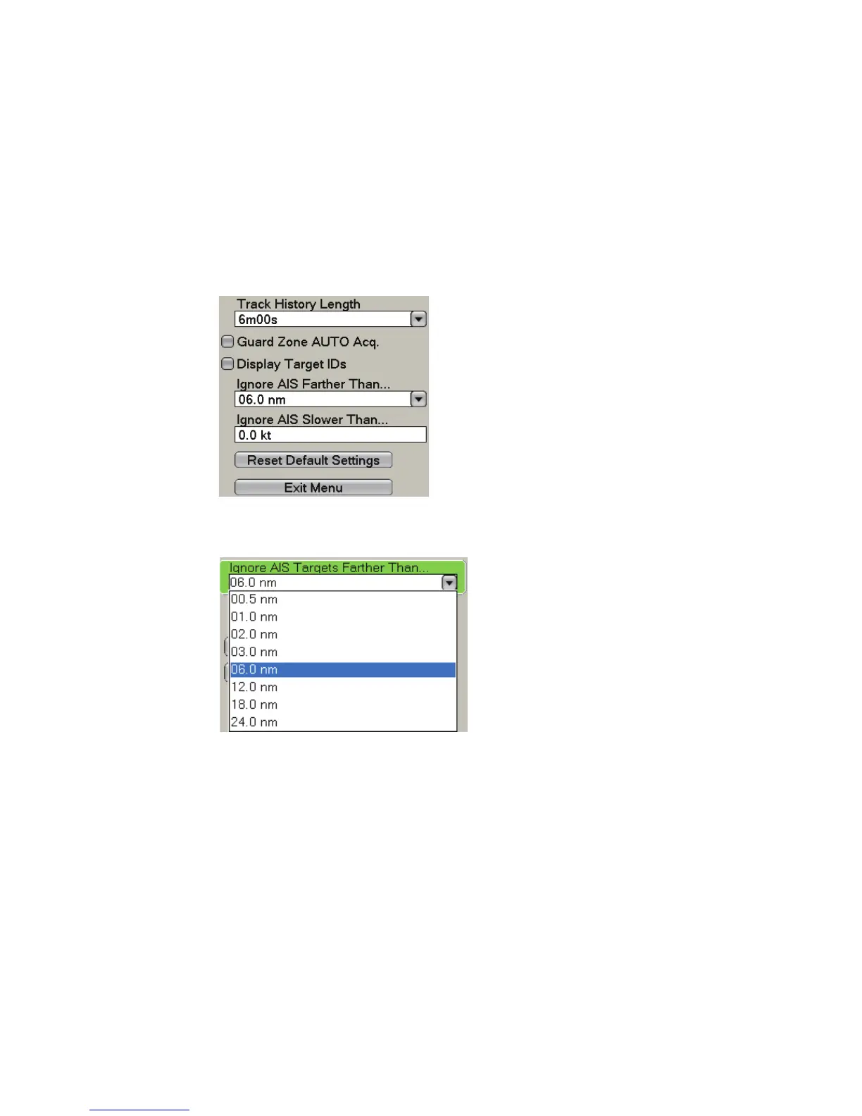 5. Select [Ignore AIS Targets Slower Than....]. This item prevents frequent violation