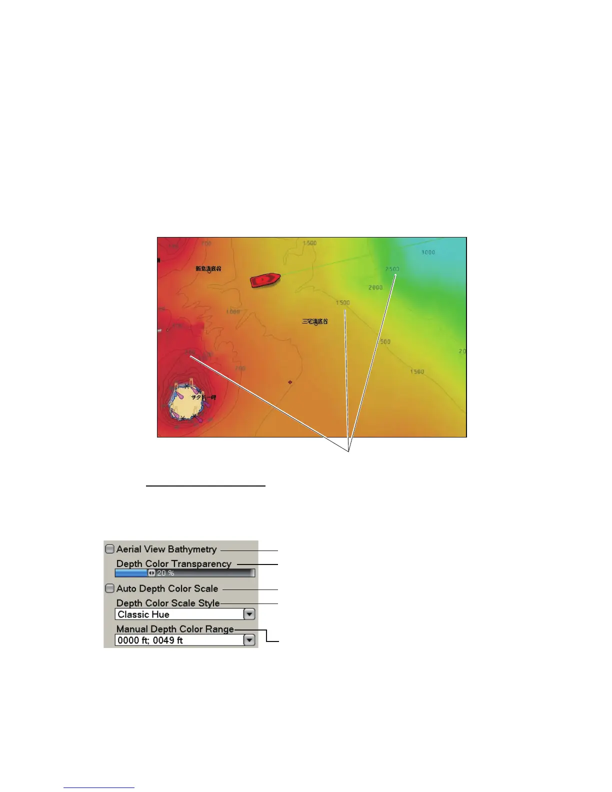lay to find depths. Transparency levels can be adjusted so that the chart data is visible