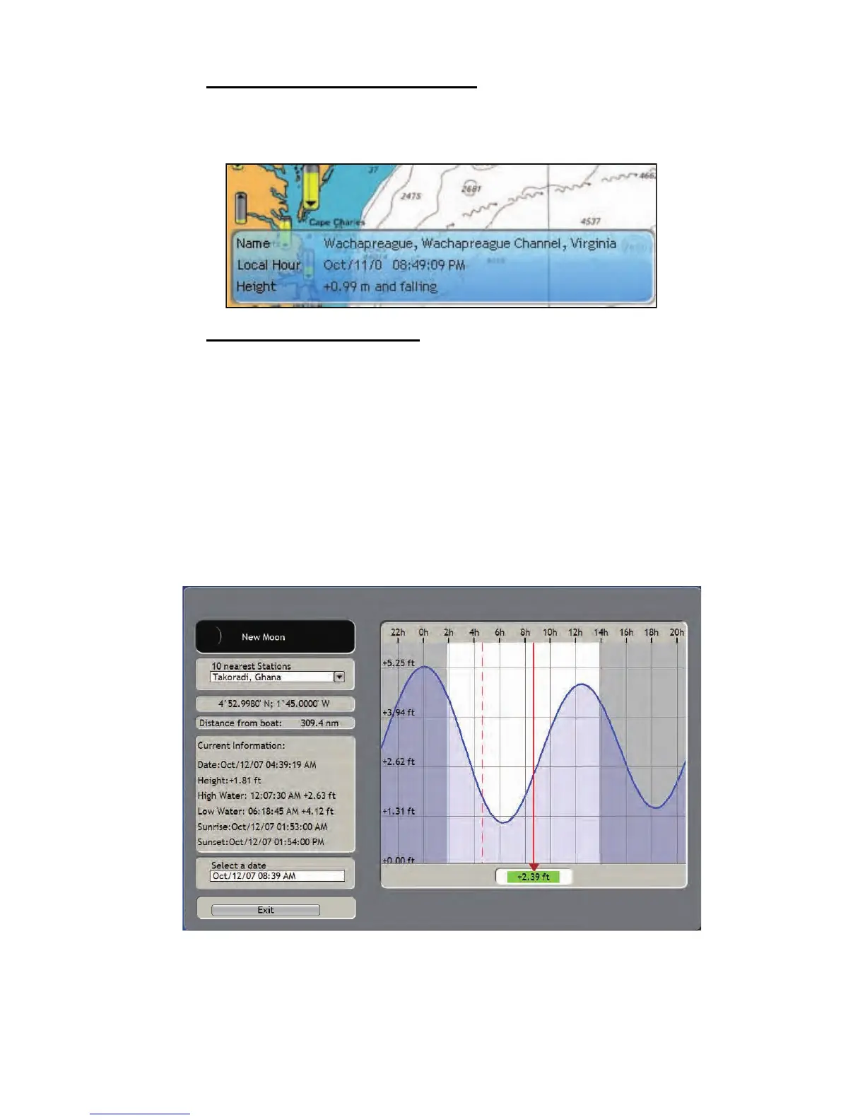 • Use the CursorPad to a tidal symbol then push the left-click button to show the tide