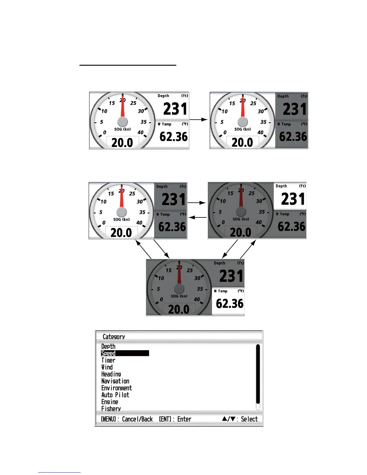 1. With the data screen displayed, press the ENT key. The screen changes as be-
